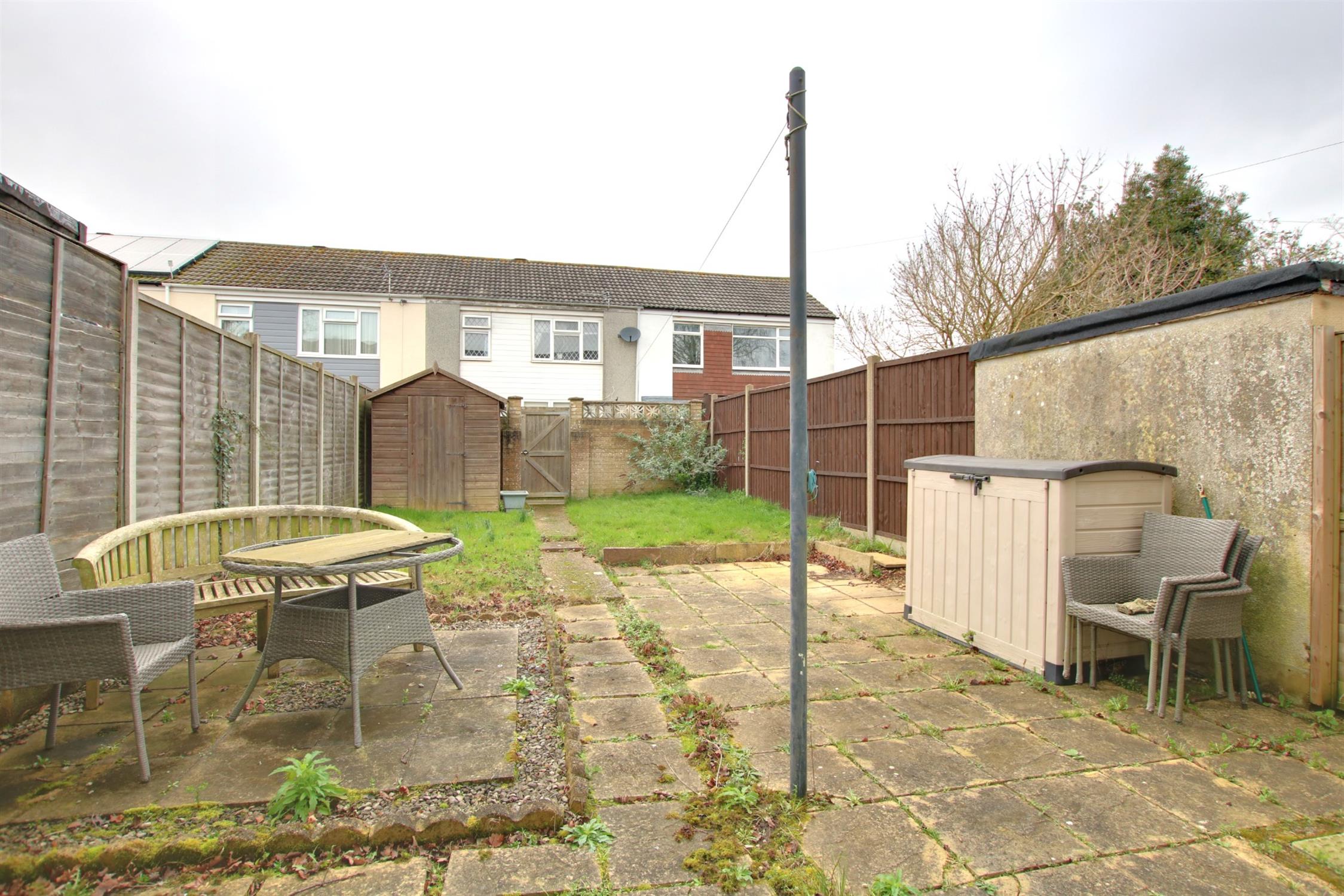 The rear garden benefits from two patio areas with a flagstone path leading to the rear with rear gated access. Enclosed by fence panelling with lawned areas. Detached timber shed.