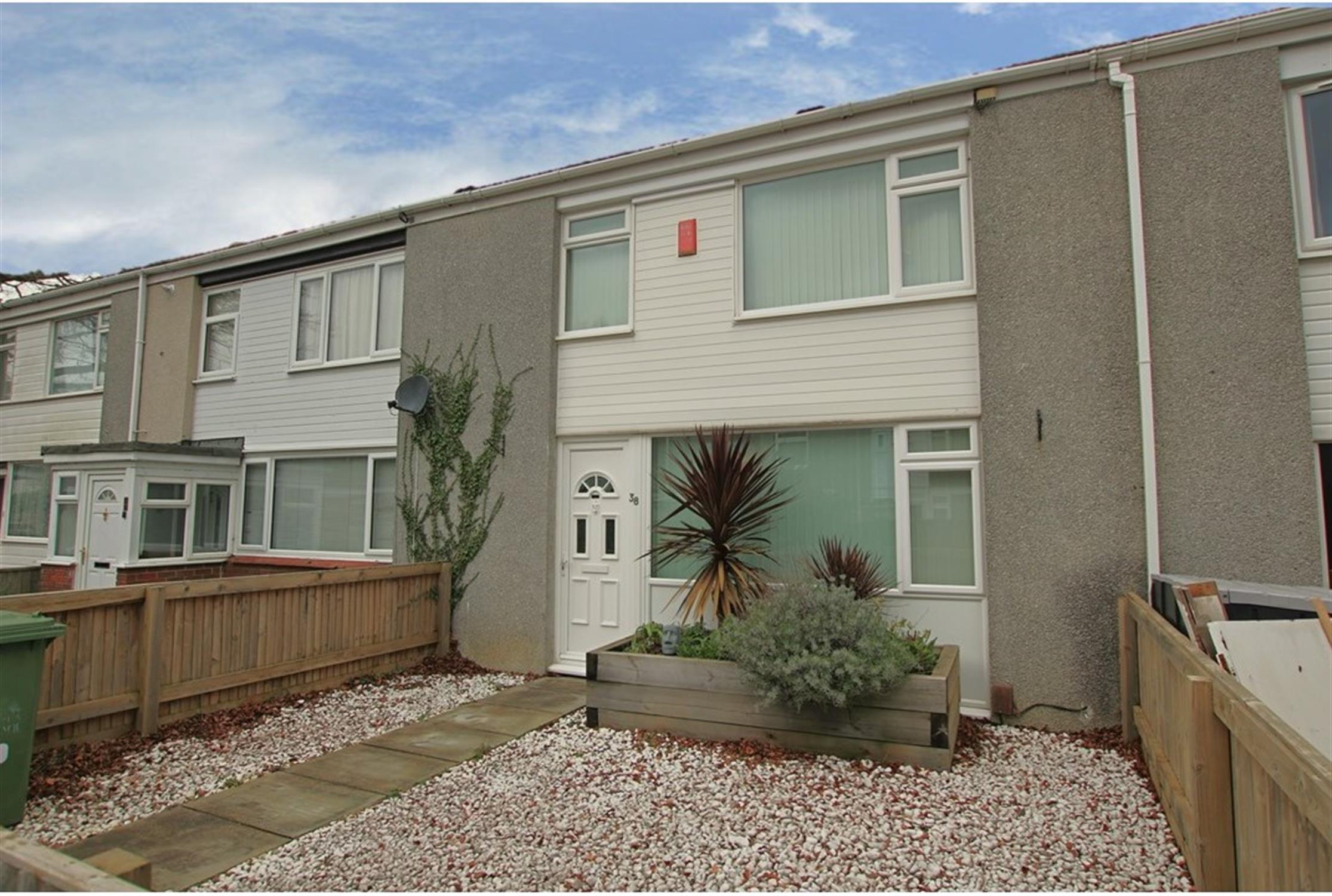 The front garden is enclosed with gated access and a flagstone pathway. The remainder of the garden is laid to stone finish with a railway sleeper planter.