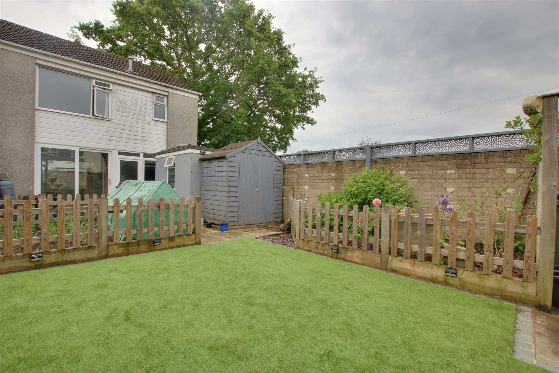 The rear garden benefits from being set into defined areas to include a patio area suitable for outside entertaining with a coloured clad finsh. Picket fence enclosed planted areas and a recreation area laid with artificial grass. A flagstone path leads to the rear with rear gated access. Enclosed by fence panelling and brick walling. Detached timber shed and block constructed outside store.