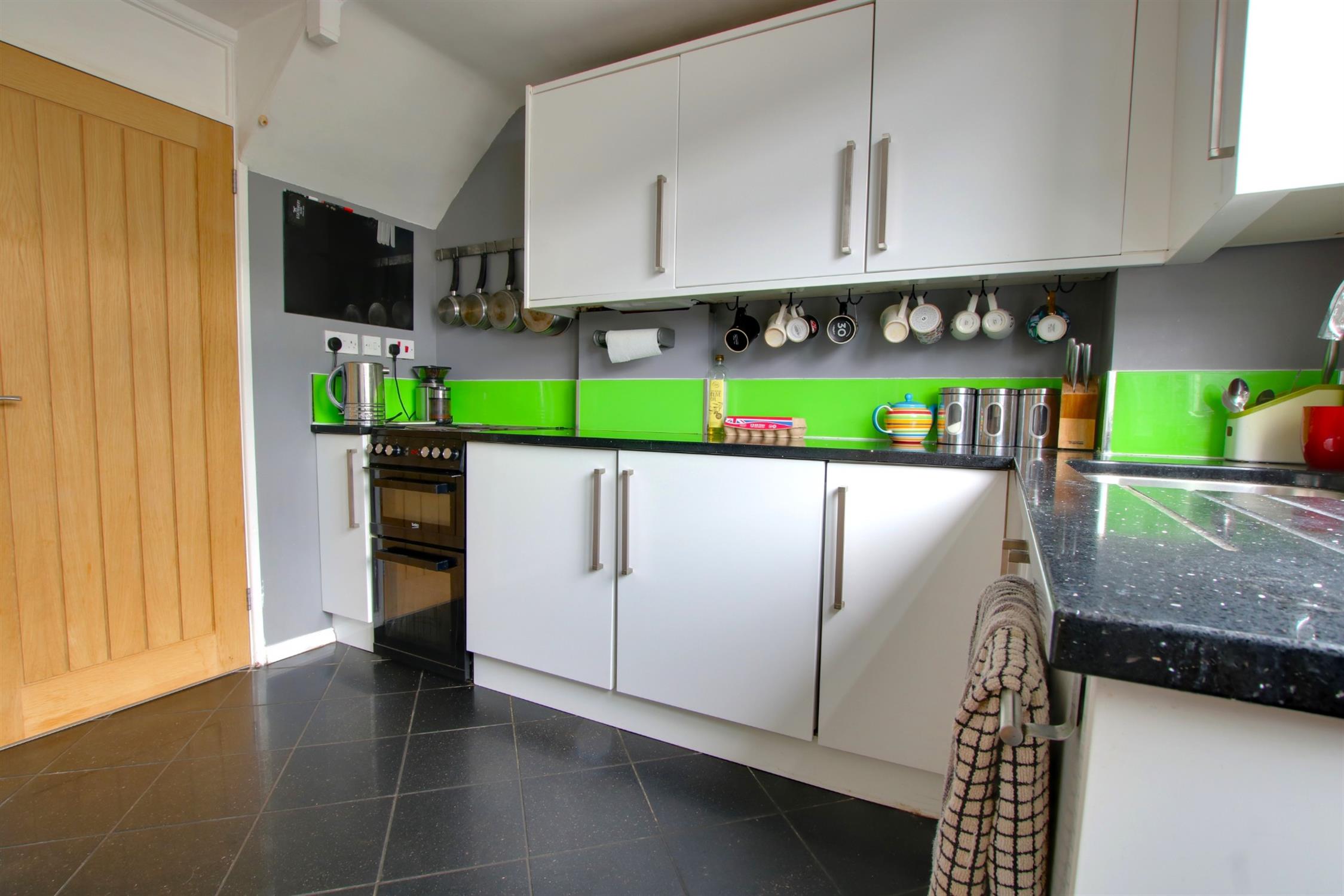 Fitted range of units to include space for oven. Integrated washing machine. Wall mounted central heating boiler. Underlaid sink unit with integrated drainer and mixer tap fitting. Double glazed door and window to rear elevation. Smooth plastered ceiling. Contrasting upstansd to worktop surfaces. Smooth plastered ceiling. Tiled flooring. Oak veneer internal door.