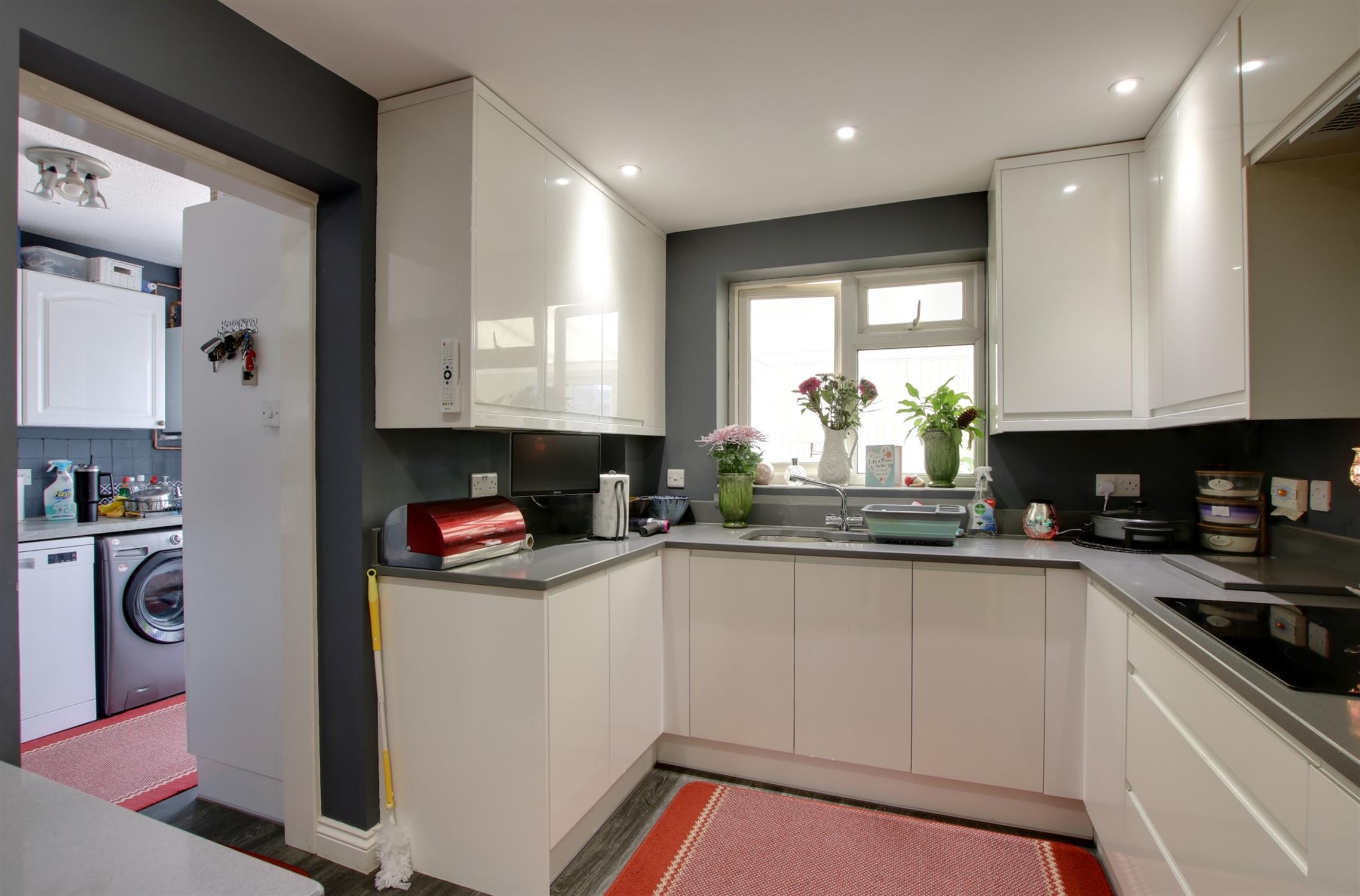 Double glazed French doors leading to garden. Stainless steel single drainer sink unit with cupboard under. Further range of wall and base level units with plumbing for washing machine and dishwasher. Space for tumble dryer and for fridge/freezer.