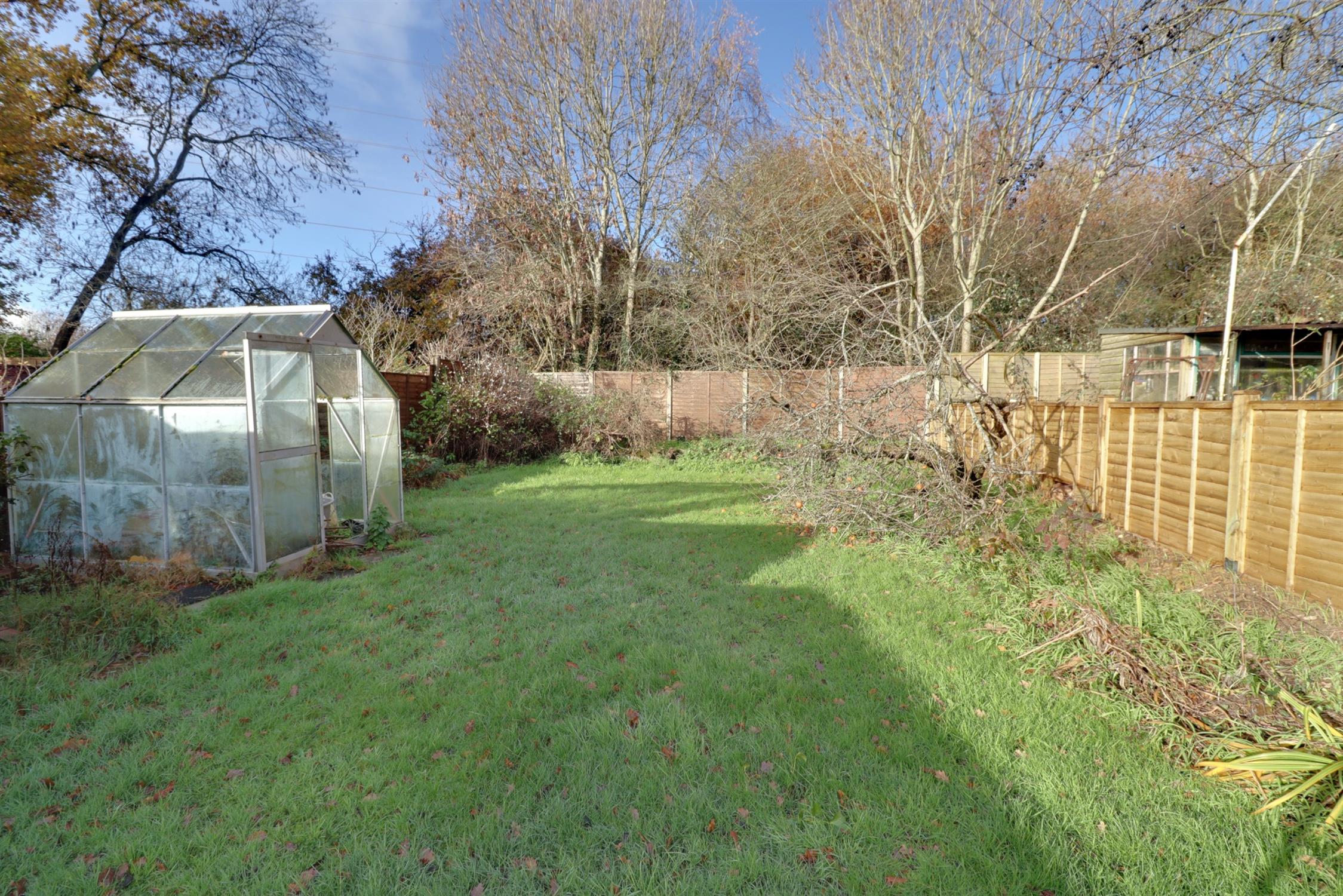 A well-proportioned and private space, backing onto fields leading to Billy's Lake, enclosed by fence, lawn with mature shrubs, apple tree, shed and green house.