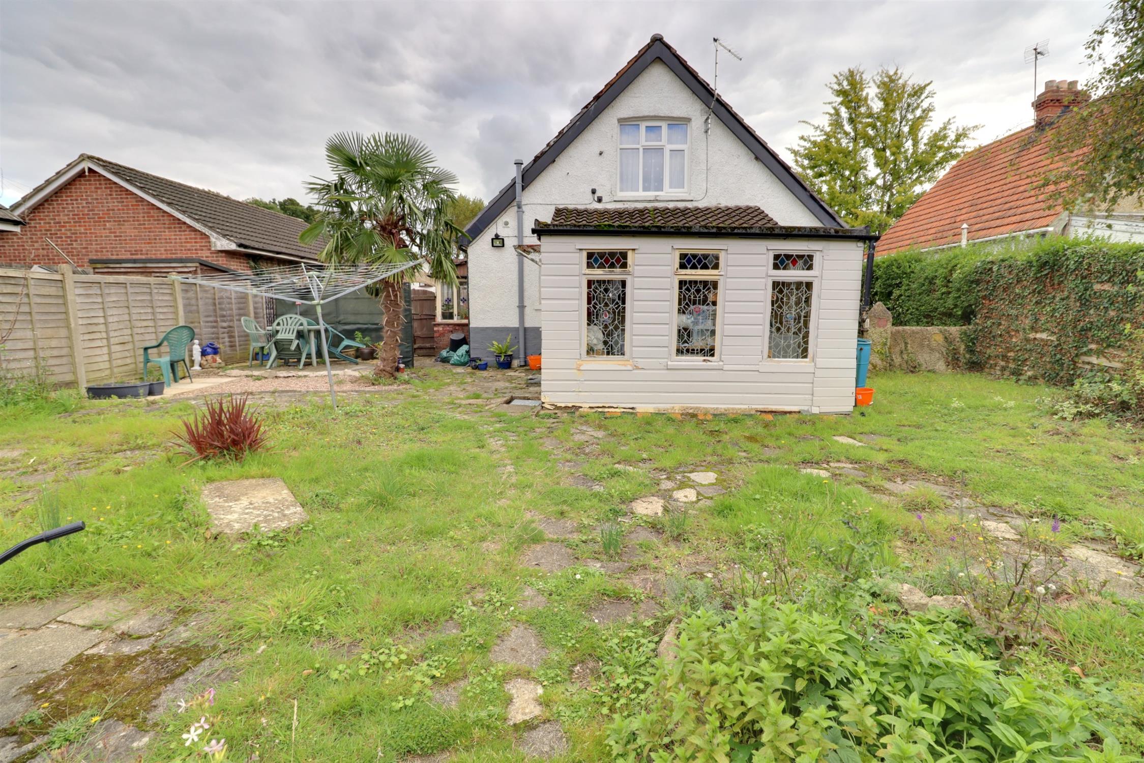 A three bedroom detached chalet style house situated on a large plot offering scope to extend (subject to planning). This property benefits from recently installed double glazing, new carpets where appropriate, large driveway for multiple vehicles, large rear garden, three double bedrooms (two on the first floor and one on the ground floor), lounge, dining room and bathroom with separate WC. Some modernisation required.