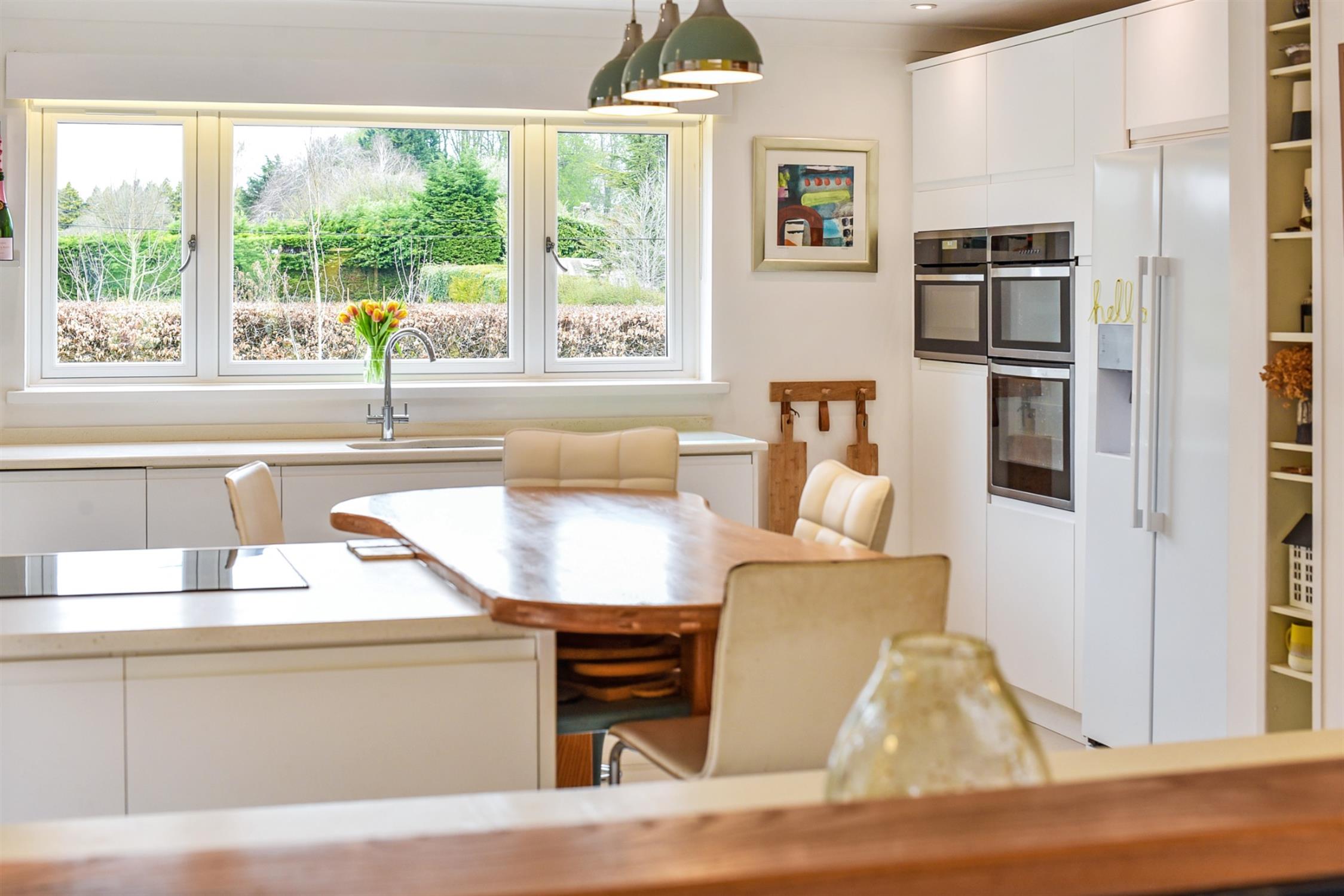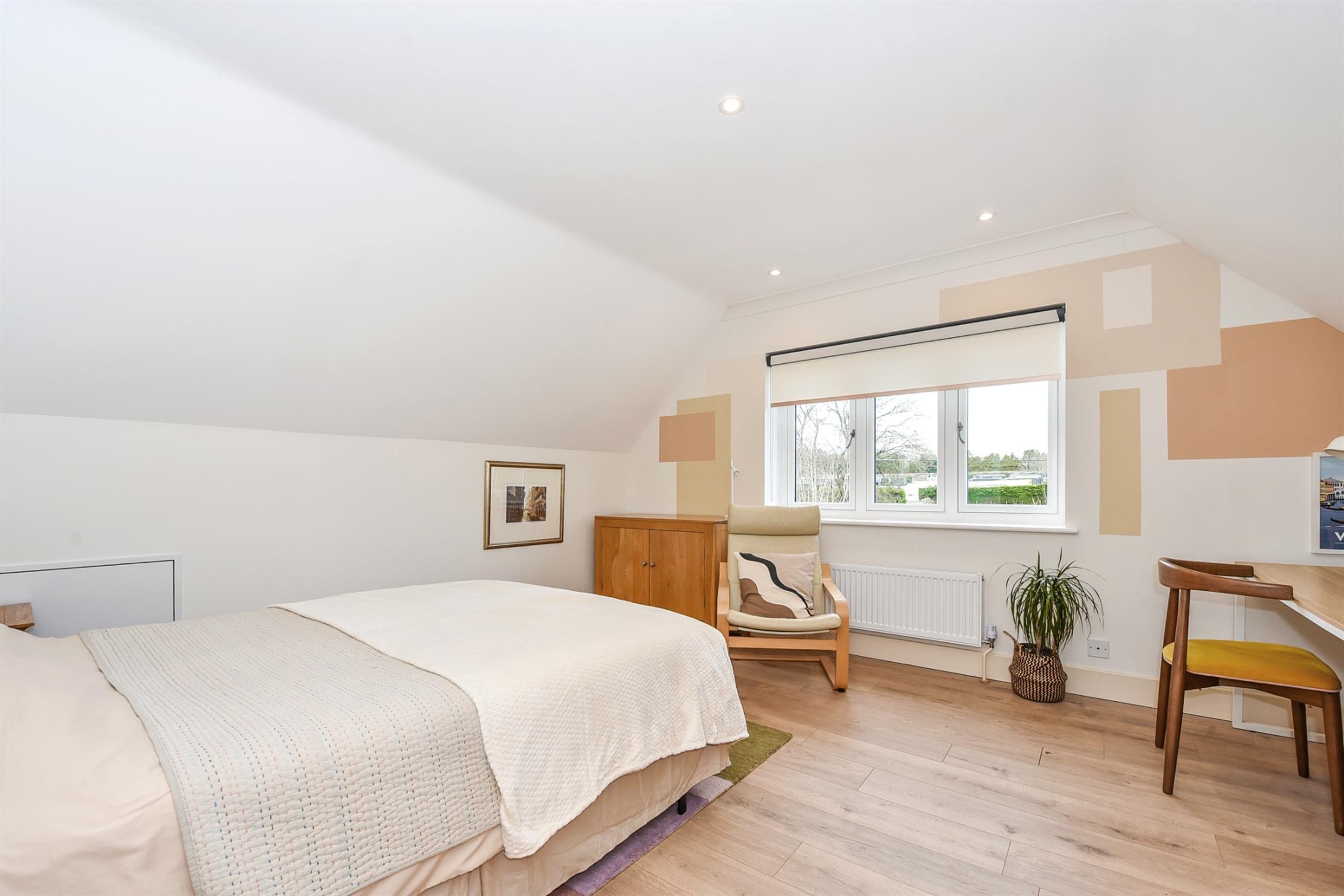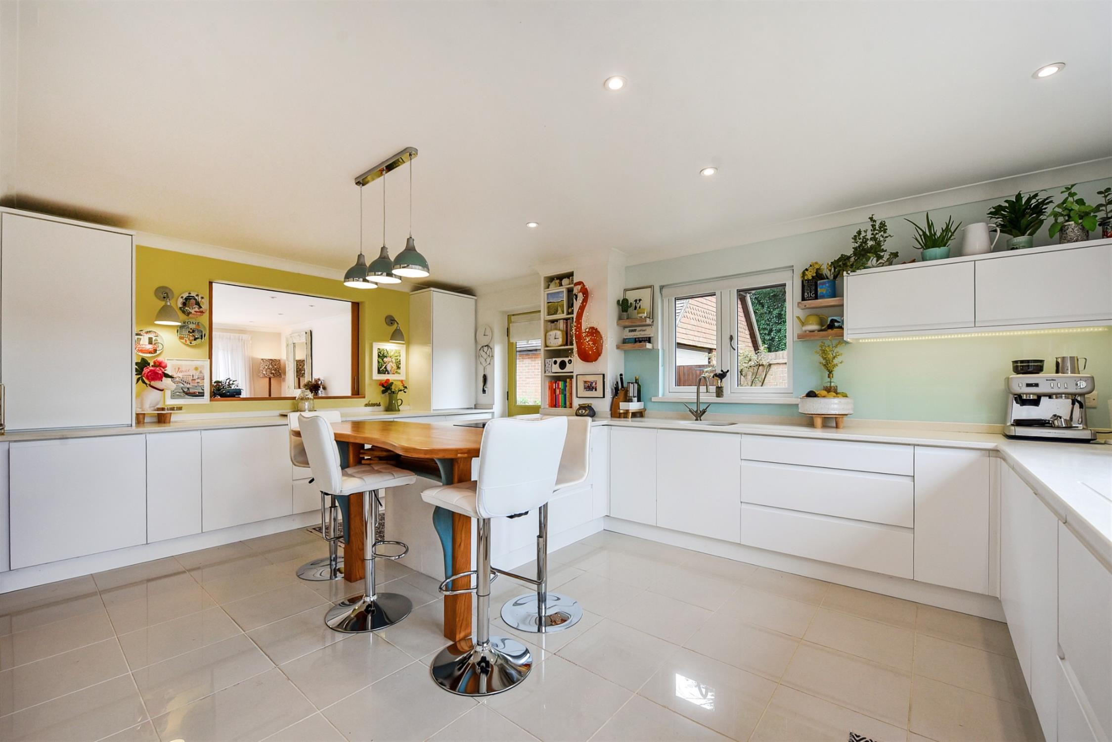 A wonderful space. Perfect for entertaining, with room for a large party. Low-level units with solid wood worktop, storage, wine fridge and dishwasher. Attractive timber panelled feature wall. Beamed ceilings with loft space. Would serve very well as a party space, large gym, den or large home office with plenty of room for large meetings. Composite deck to the side and extended gated driveway for vehicular access if necessary.