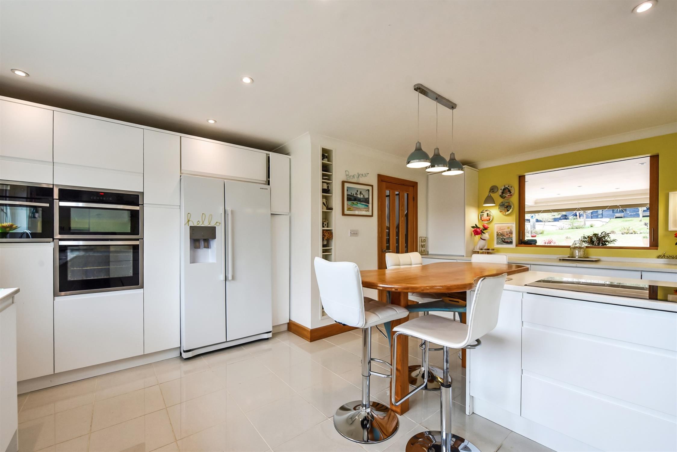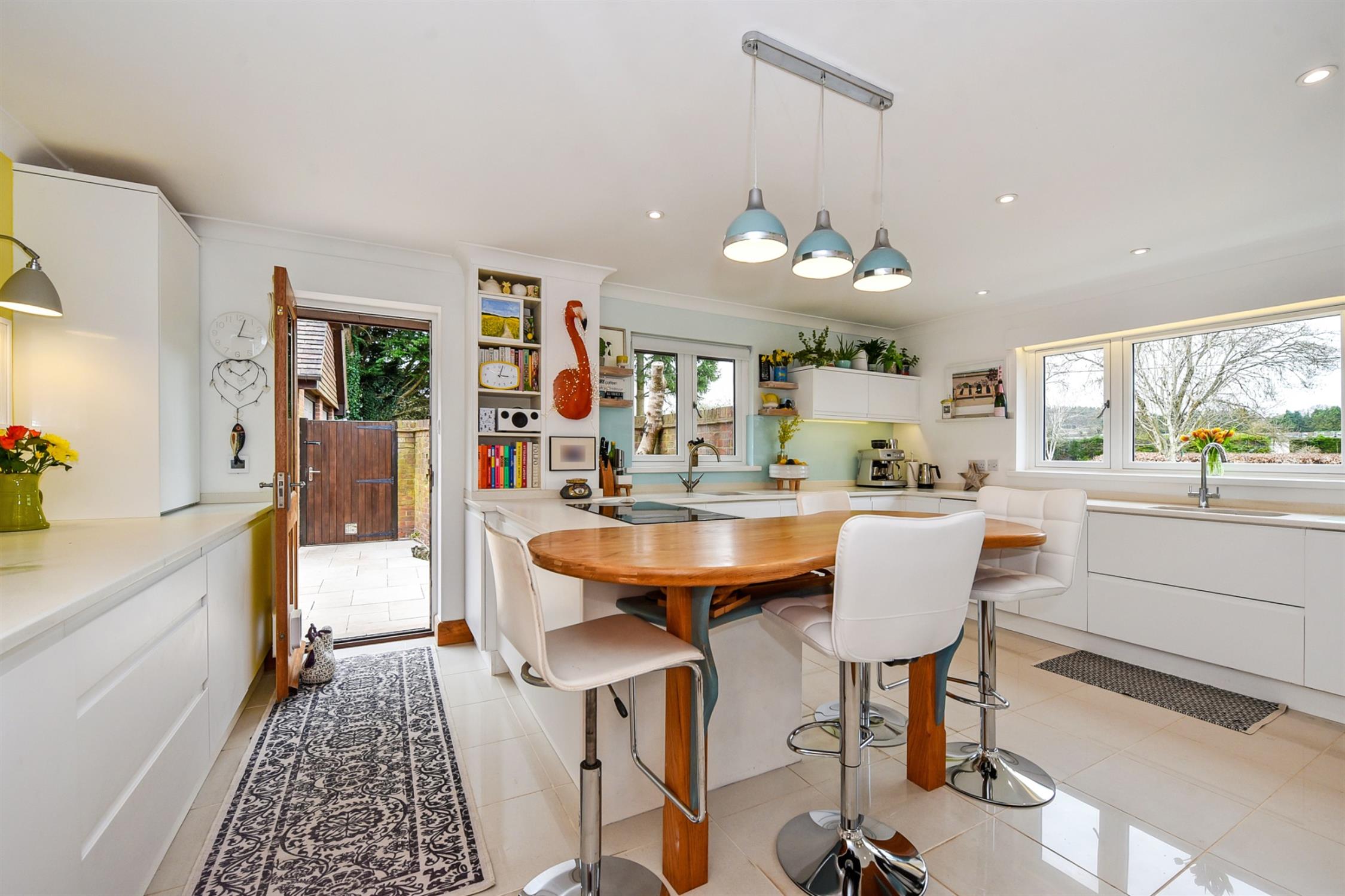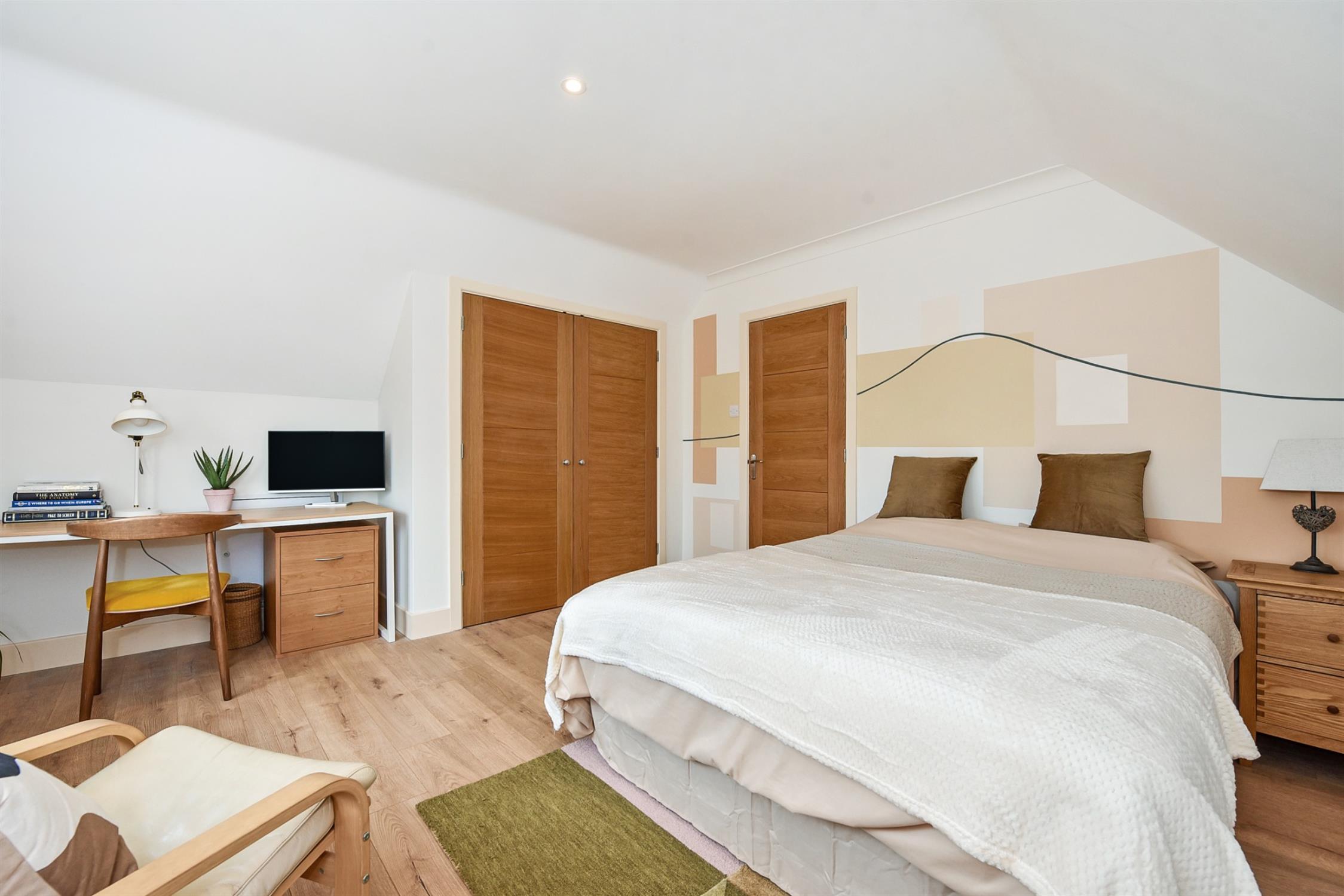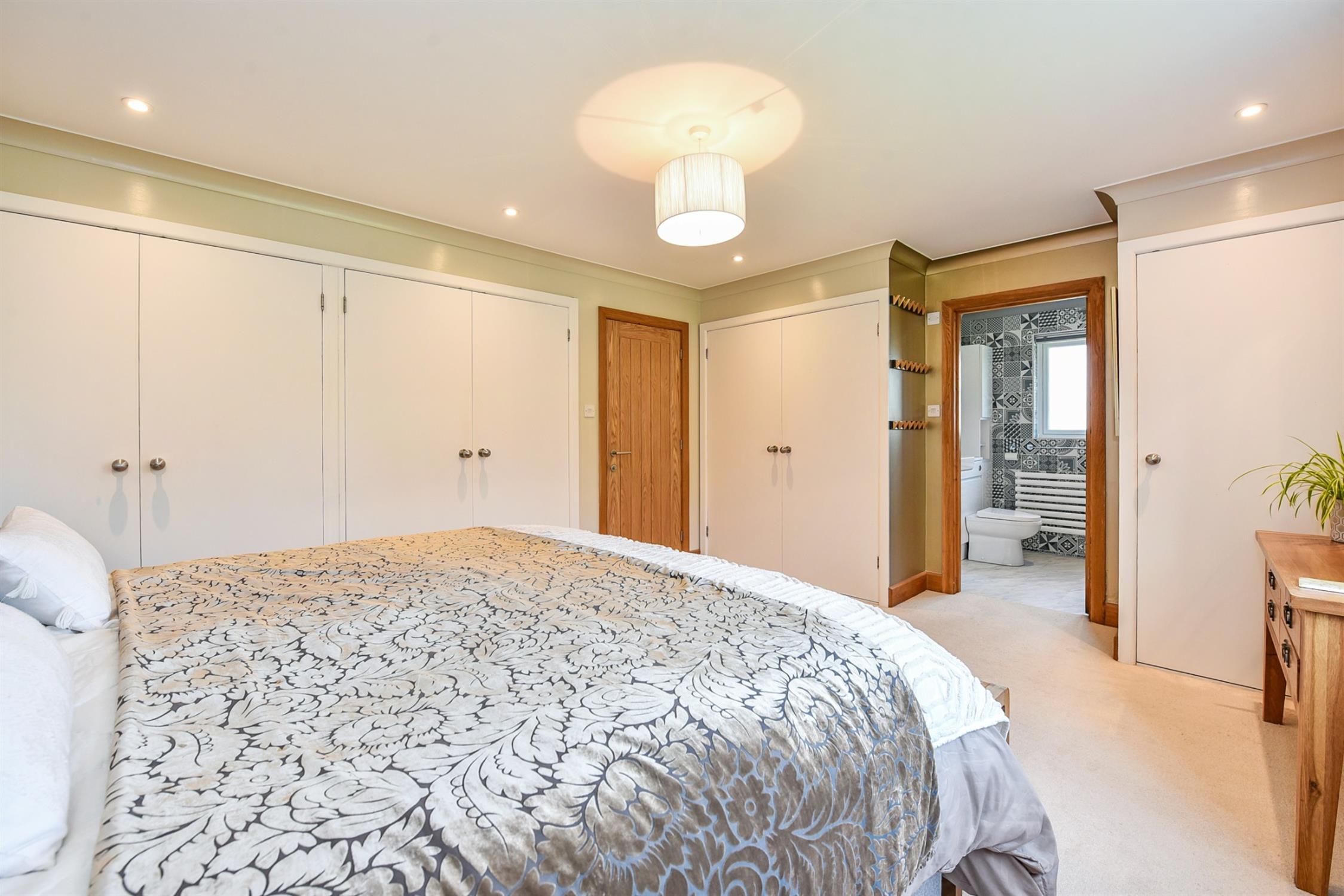 A wonderful space. Perfect for entertaining, with room for a large party. Low-level units with solid wood worktop, storage, wine fridge and dishwasher. Attractive timber panelled feature wall. Beamed ceilings with loft space. Would serve very well as a party space, large gym, den or large home office with plenty of room for large meetings. Composite deck to the side and extended gated driveway for vehicular access if necessary.