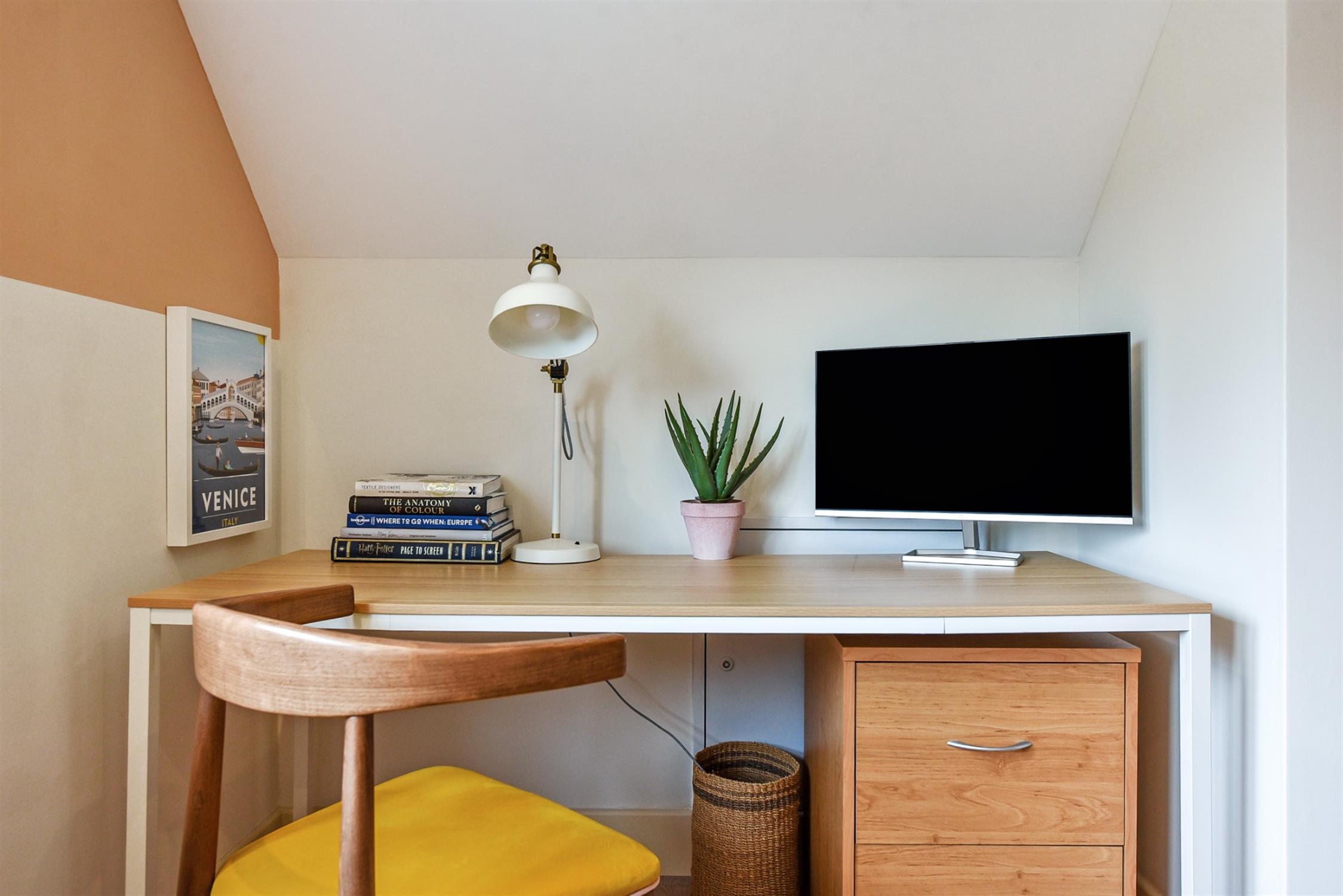 Attractive decoration and space for a perfect work-from-home space, home office, study or small library.