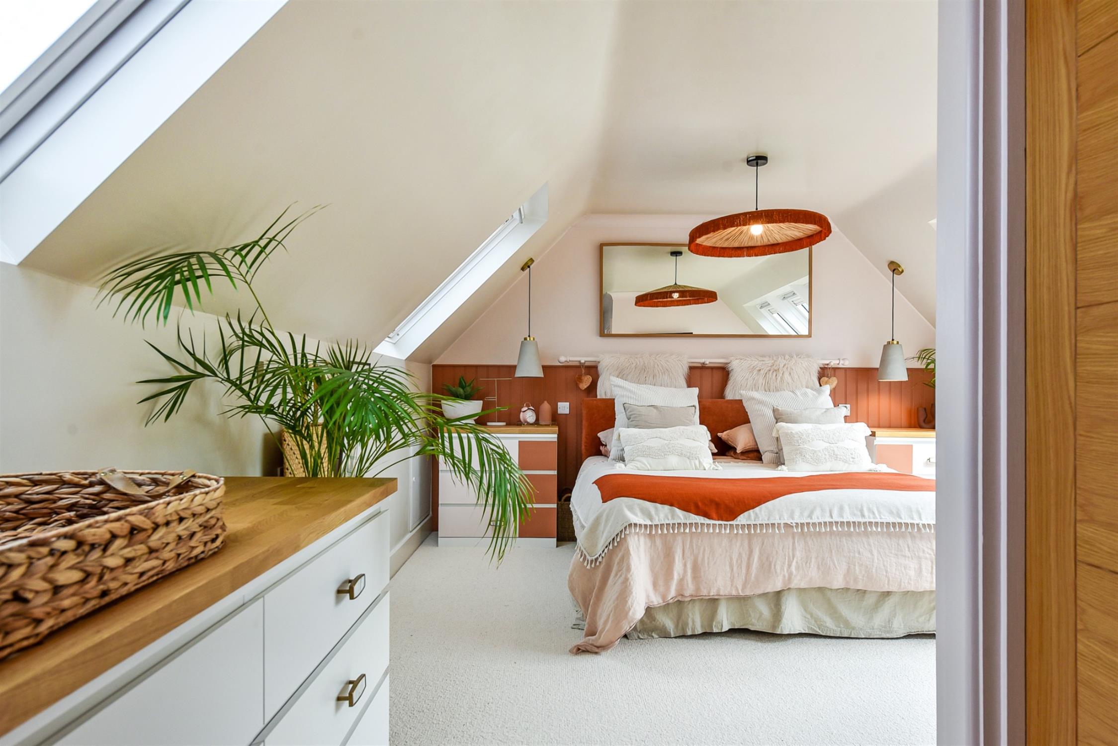 South-facing Velux window. Large airing cupboard with immersion tank. Decorated nook for storage. Access to the loft from the landing.