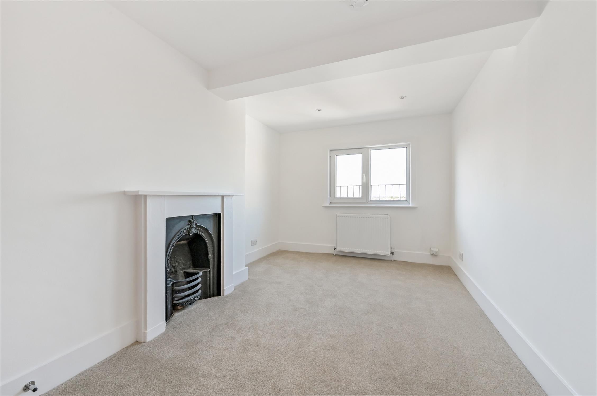 Smooth ceiling, inset spotlights, two double glazed windows with views across The Solent, feature fireplace, two radiators, cupboard housing electric fuse board, fitted carpet.