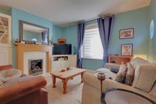 Double glazed window to front elevation, fitted gas fire, radiator, smooth ceiling, porthole window to side elevation, fitted cabinet with glass unit and fitted console.