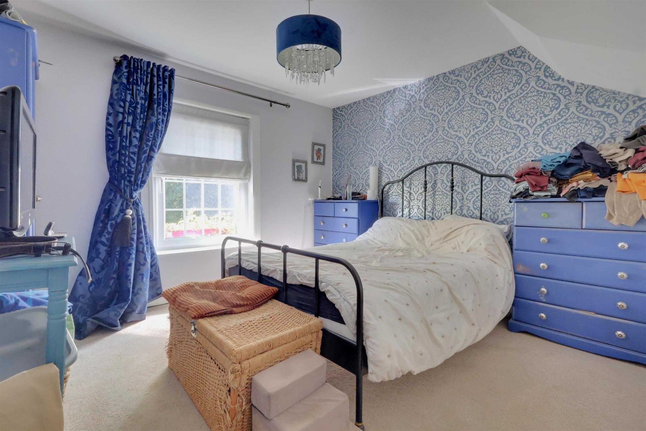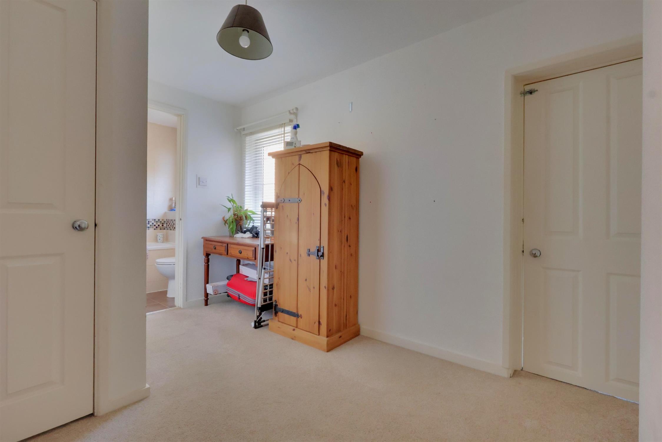 Double glazed window to front and side elevation, two cupboards into the eaves storage, built-in wardrobe, radiator, smooth ceiling access to loft hatch, inset spot lights.
