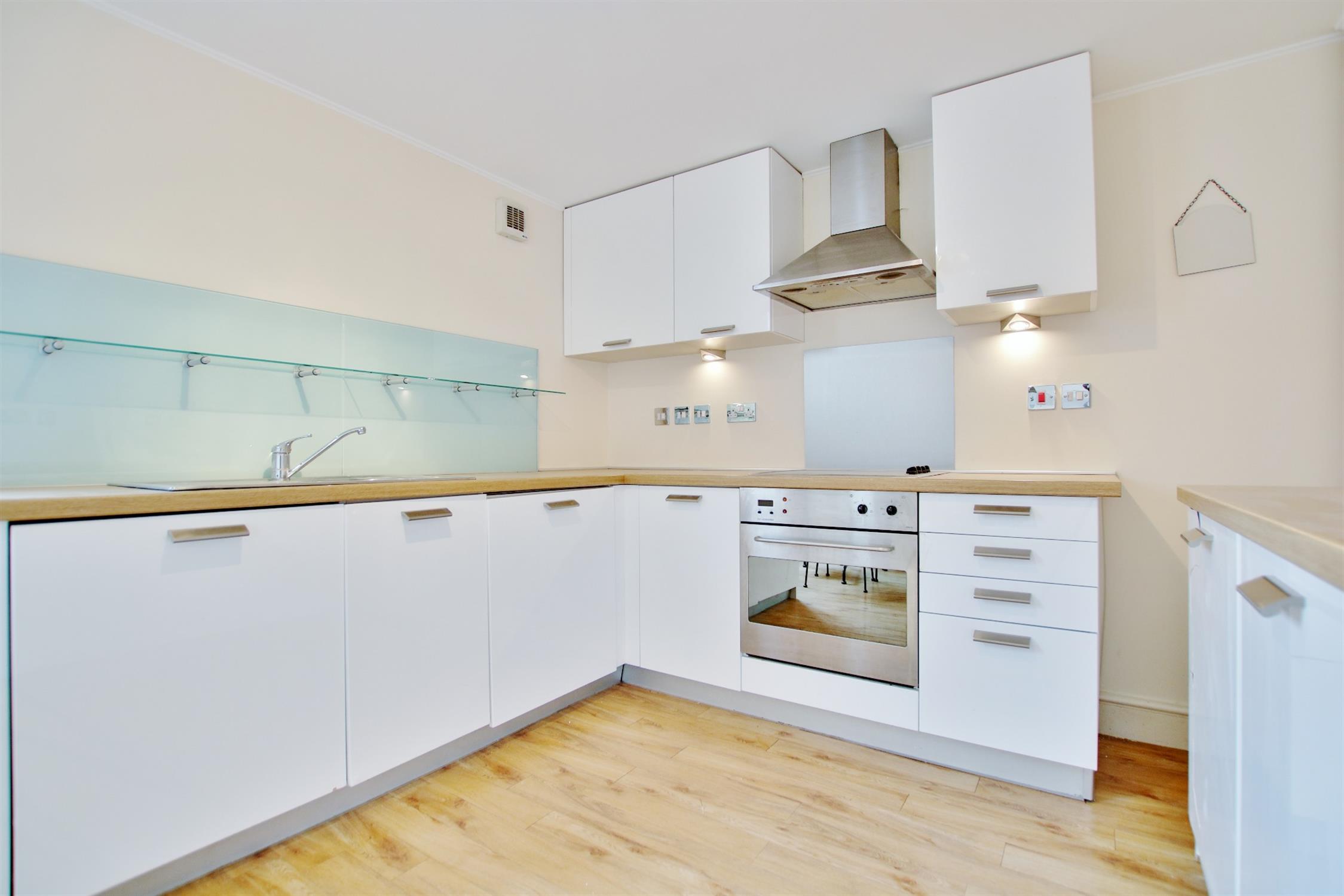 Range of eye and base level units with integrated oven and four point induction hob. Stainless steel sink with drainer. Integrated dishwasher, integrated fridge/freezer and integrated washing machine. Overlooking the living area is the terrace mezzanine level.