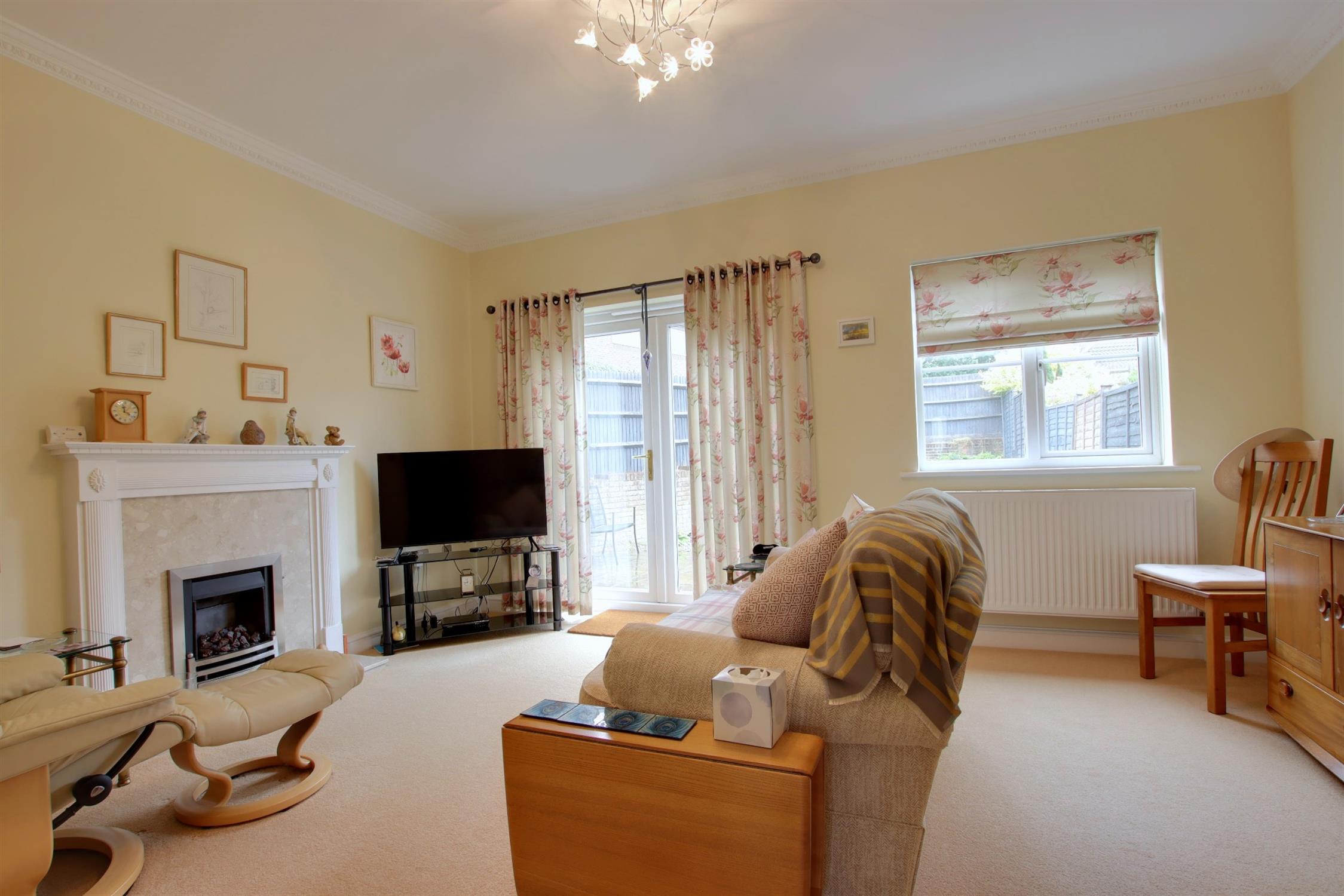 Double glazed window to rear elevation and double glazed French doors leading to garden. Radiator. Attractive fireplace with inset coal effect gas fire. Coved and skimmed ceiling. Ceiling rose.