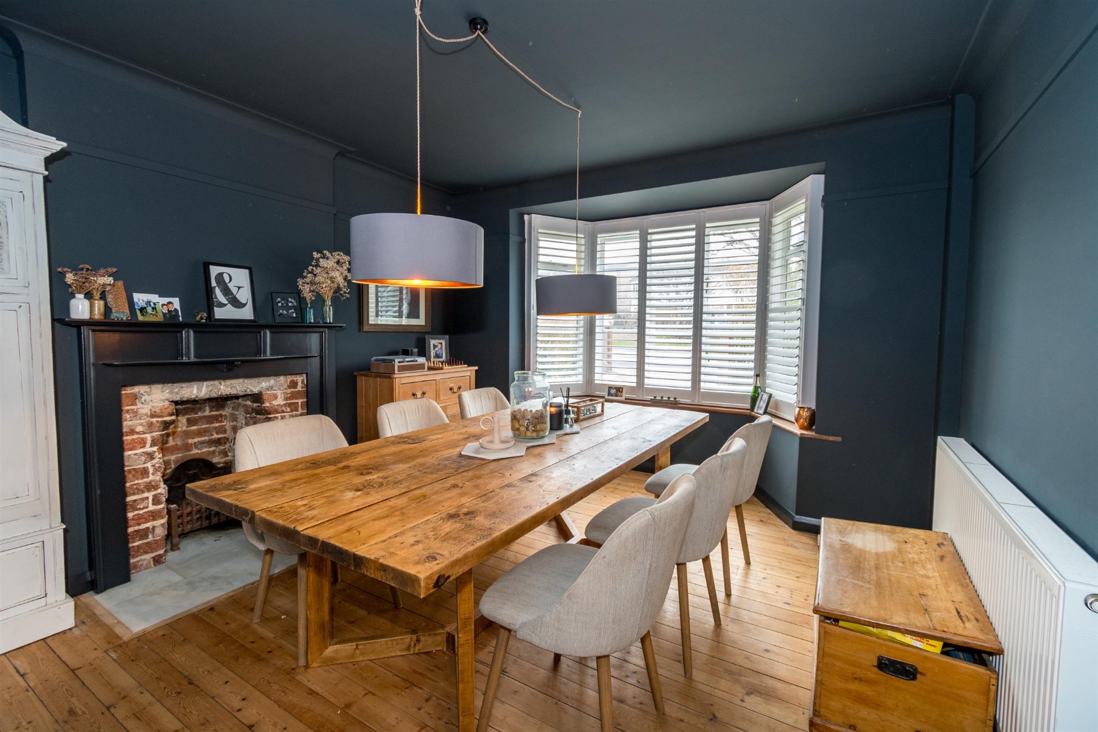 Substantial entrance hall with shaped leaded window over. Further window to front elevation. Stairs rising to first floor landing with under stair storage. Herringbone oak wood flooring. Radiator with decorative cover. Smooth plastered ceiling.