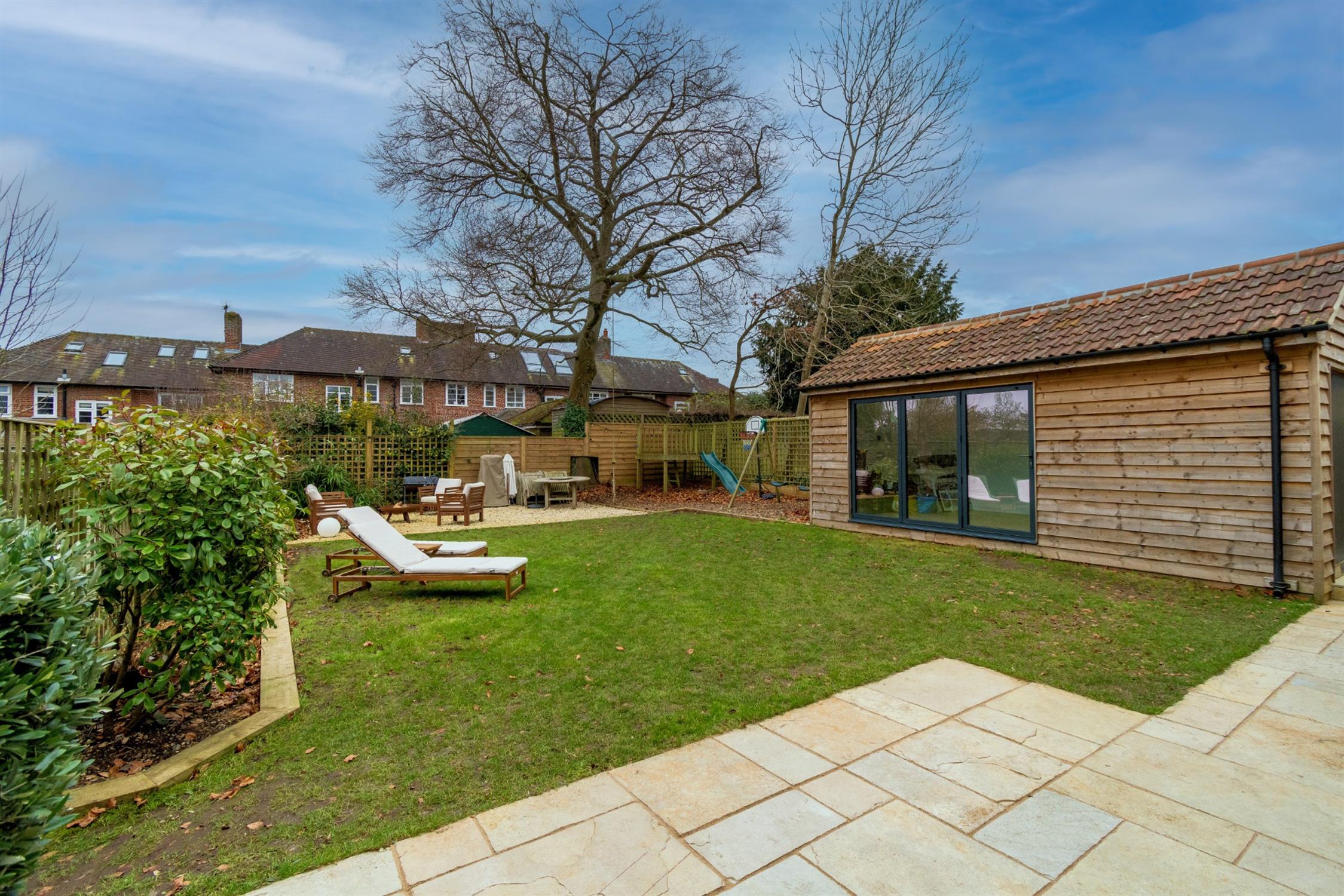 The rear garden has been comprehensively landscaped and provides an extensive patio area suitable for outside entertaining and dining. The garden is laid to two further defined areas trimmed by sleepers which is partially laid to lawn and partially stone area providing additional space for entertaining. The garden also benefits from a southerly aspect with replacement fences to the perimeters. Another stand out feature of the property is the extensive garden room which could have multiple uses such as home office or gymnasium or recreation area. Constructed of timber with clad finish and pitch tiled roof and has the benefit of bi-fold retractable doors and power and light available. The garden room is sub-divided and provides additional storage to the front elevation with double door access and power and light available. There is further suitable space for storage of equipment to the side of the property as well as venetian style fence and outside tap facilities.