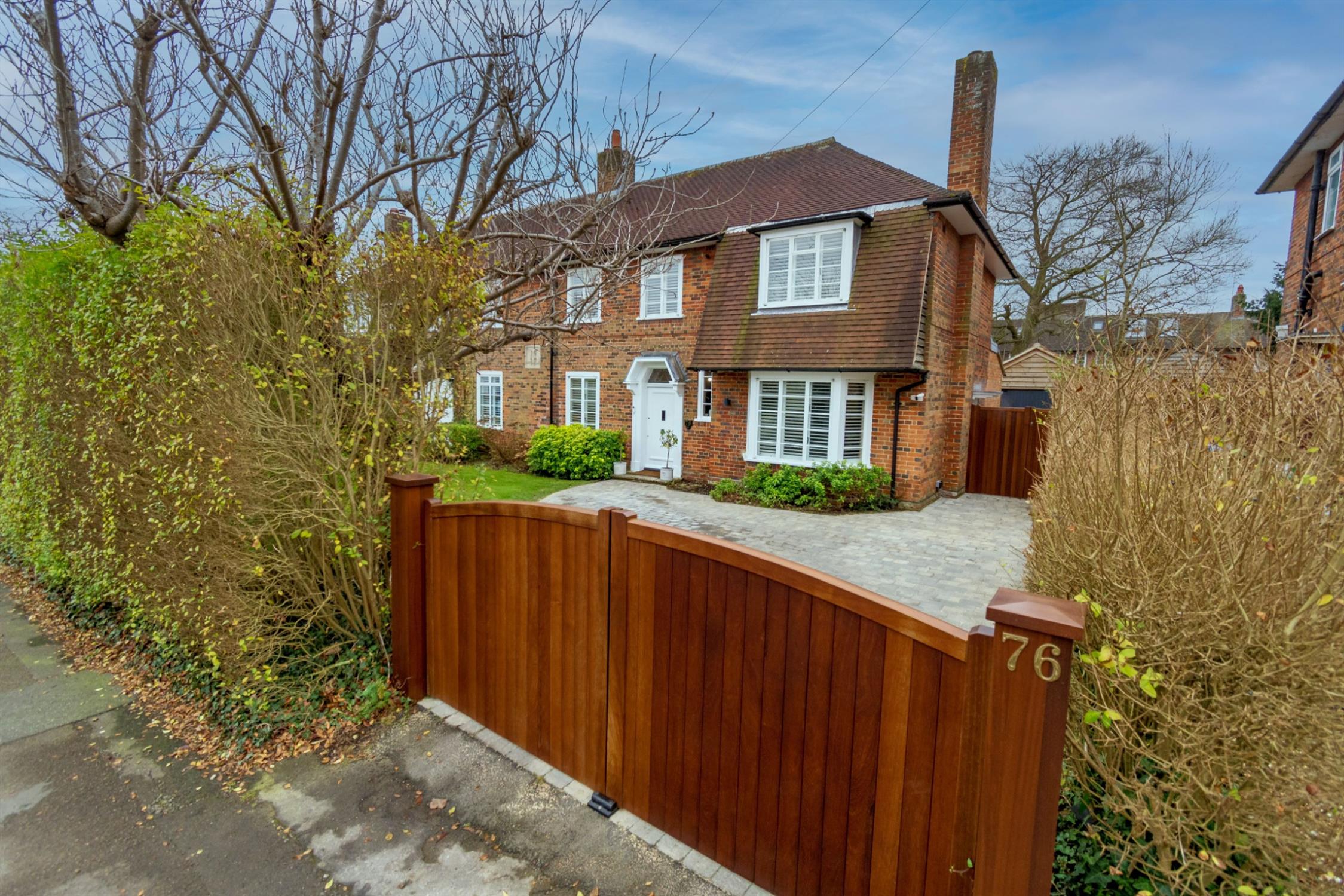 The front garden has a block paved driveway providing parking for numerous vehicles with the remainder being laid to lawn with mature hedging and trees to the perimeter offering a good degree of natural privacy. The driveway is accessed via electrically operated remotely controlled double gates. Side access to the rear garden.
