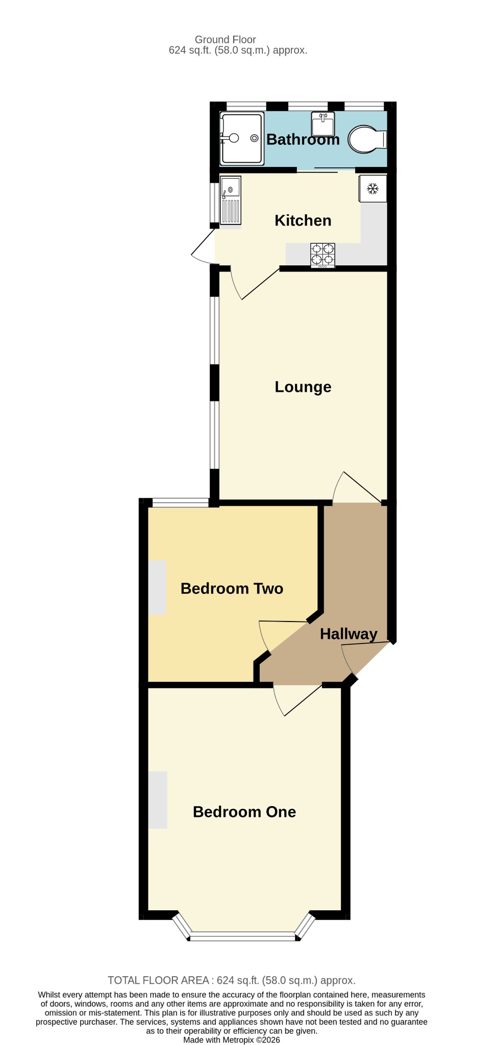 Frosted Windows to rear aspect. Smooth plastered ceiling.
