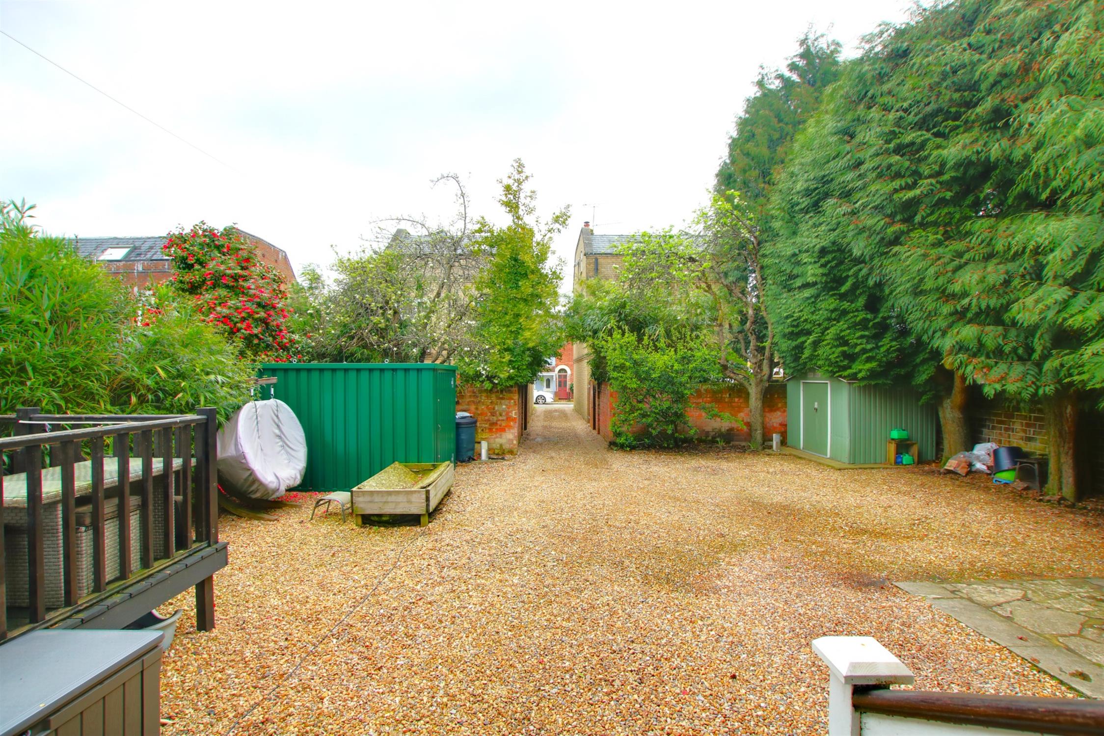 To the front of the property is mature hedging as well as substantial brick pillars with iron gates both double and single providing pedestrian access. The rear garden benefits from being a substantial raised deck, with steps and balustrade surround. The area is fully walled is laid to a shingle area and has rear vehicular access provided by double gates. There is a variety of mature flowers, plants and trees providing a high degree of natural privacy.Metal shed and wooden bin sture.