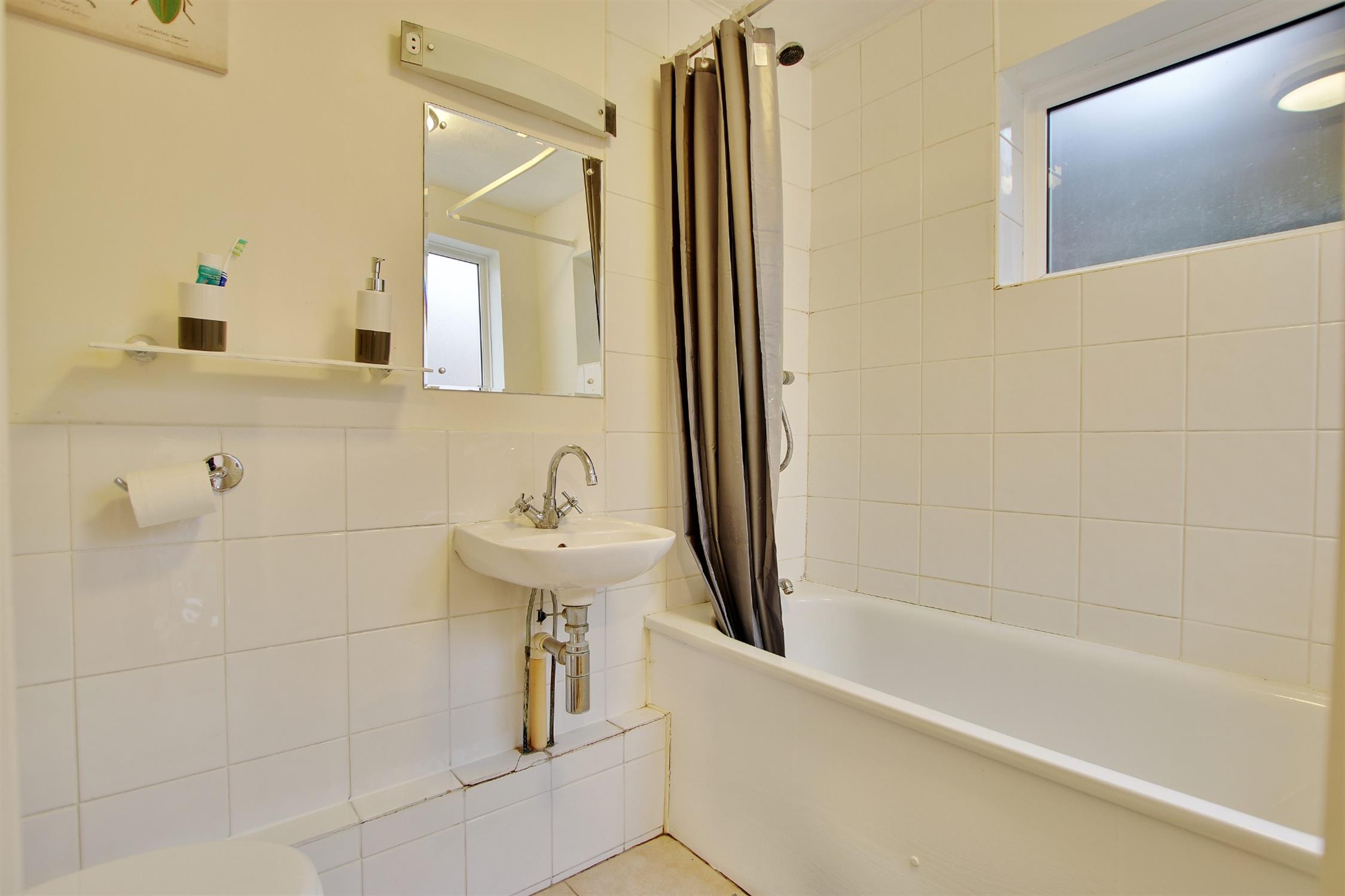 Fitted white suite comprising of panelled bath with thermostatic shower over, wall mounted sink unit, low level WC, tiled floor and part tiled wall surfaces, radiator, obscure double glazed windows to side and rear elevations.