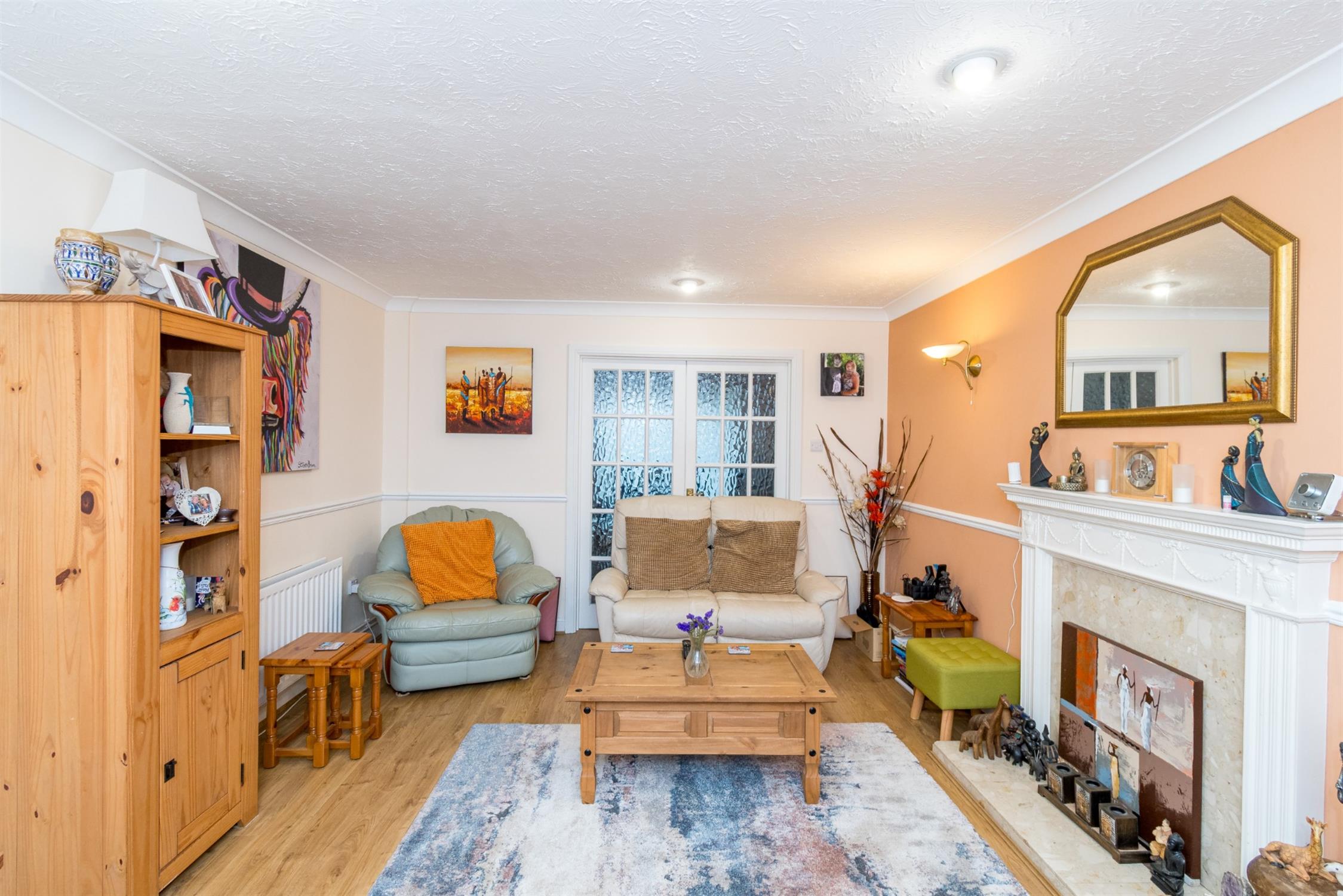 Double glazed box bay window to front aspect. Coving to textured ceiling. Feature fireplace. Radiator. Laminate flooring. Double doors leading to:-