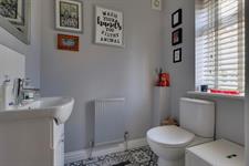 WC. Ceramic sink with cupboard under. Radiator. Double glazed window. Extractor fan.