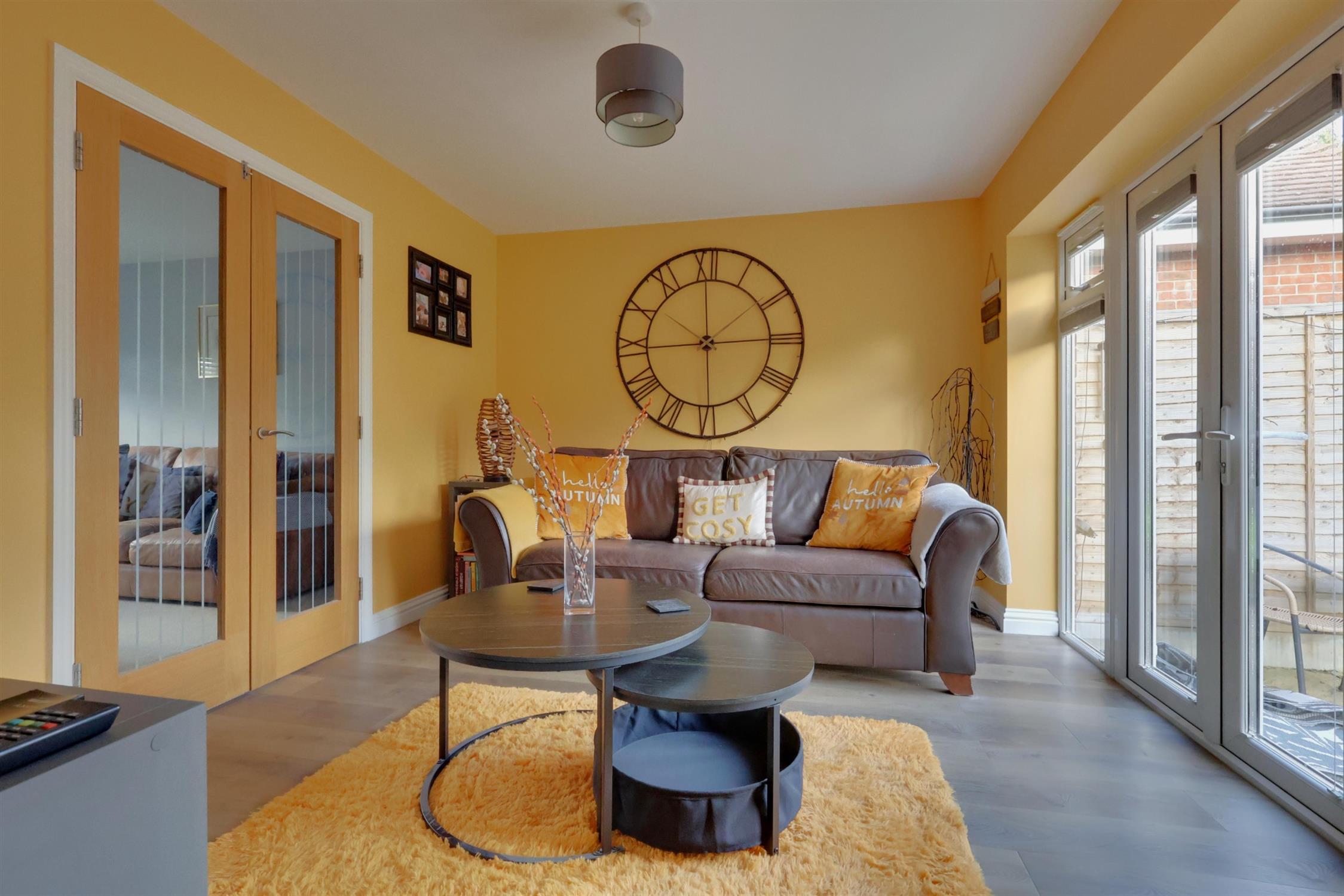 Radiator. Double glazed window. Glass panelled French doors opening to: