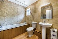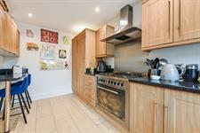 The well presented kitchen is equipped with integrated appliances such as a washing machine, dishwasher, fridge-freezer, and a gas hob with oven – alongside generous cupboard space, a stylish breakfast bar, and modern work surfaces.