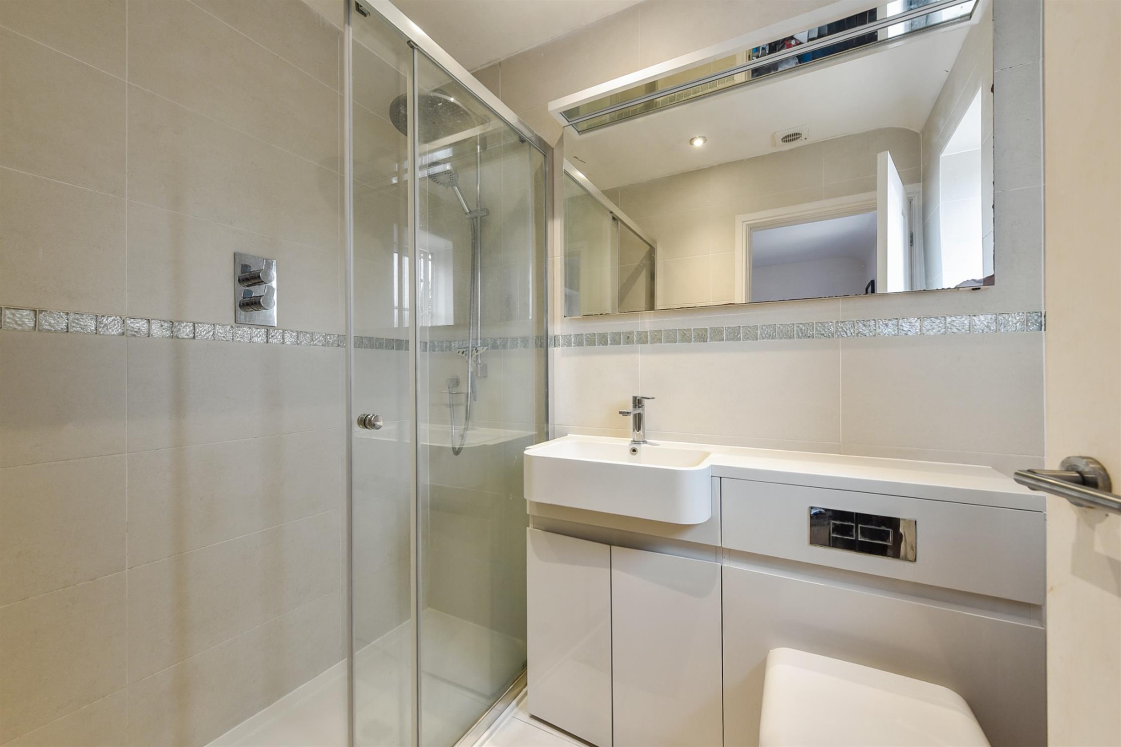 The master bedroom is generously sized and benefits from an en-suite bathroom, complete with a walk-in shower, toilet, and basin.