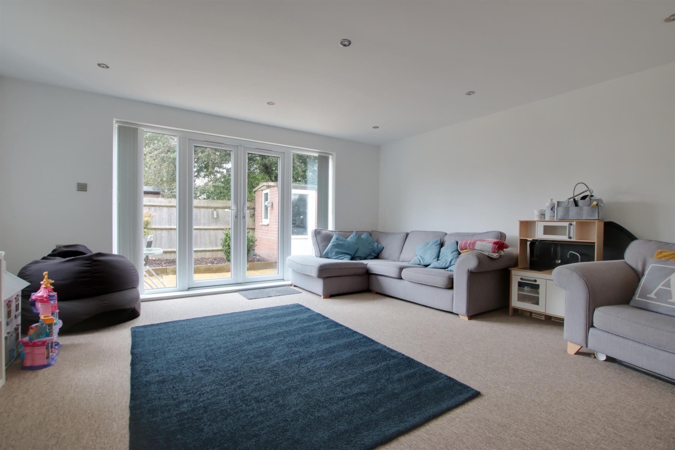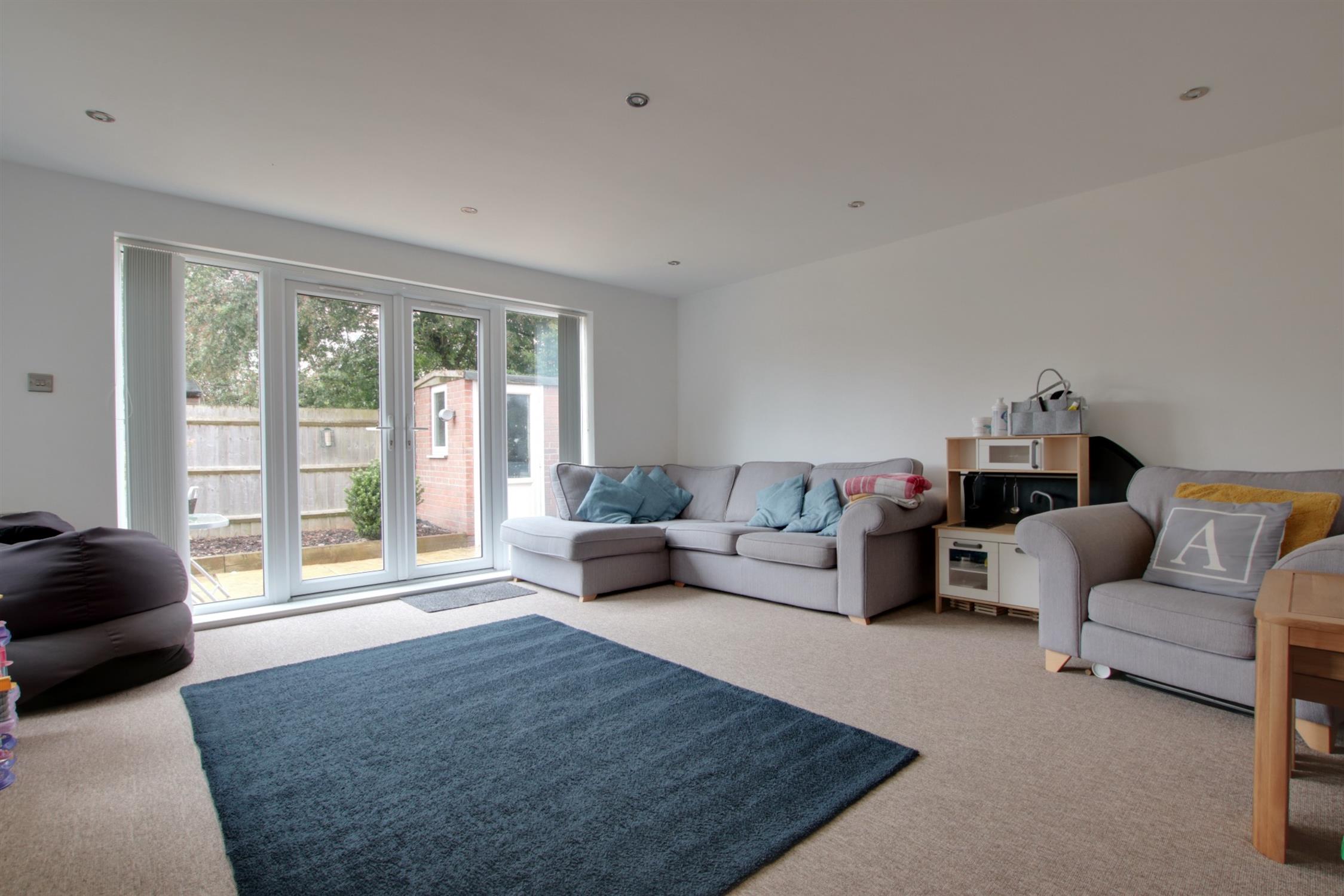 Dual aspect room with French doors to the garden and double glazed window to the front aspect. Smooth ceiling with inset spotlighting. Two radiators.