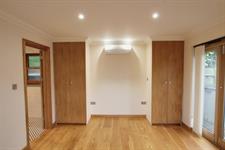 BEDROOM ONE: A generous double bedroom benefiting from two fitted wardrobes, air conditioning unit, underfloor heating, vertical sliding windows, french doors leading onto the side pathway and a modern en suite wet room.