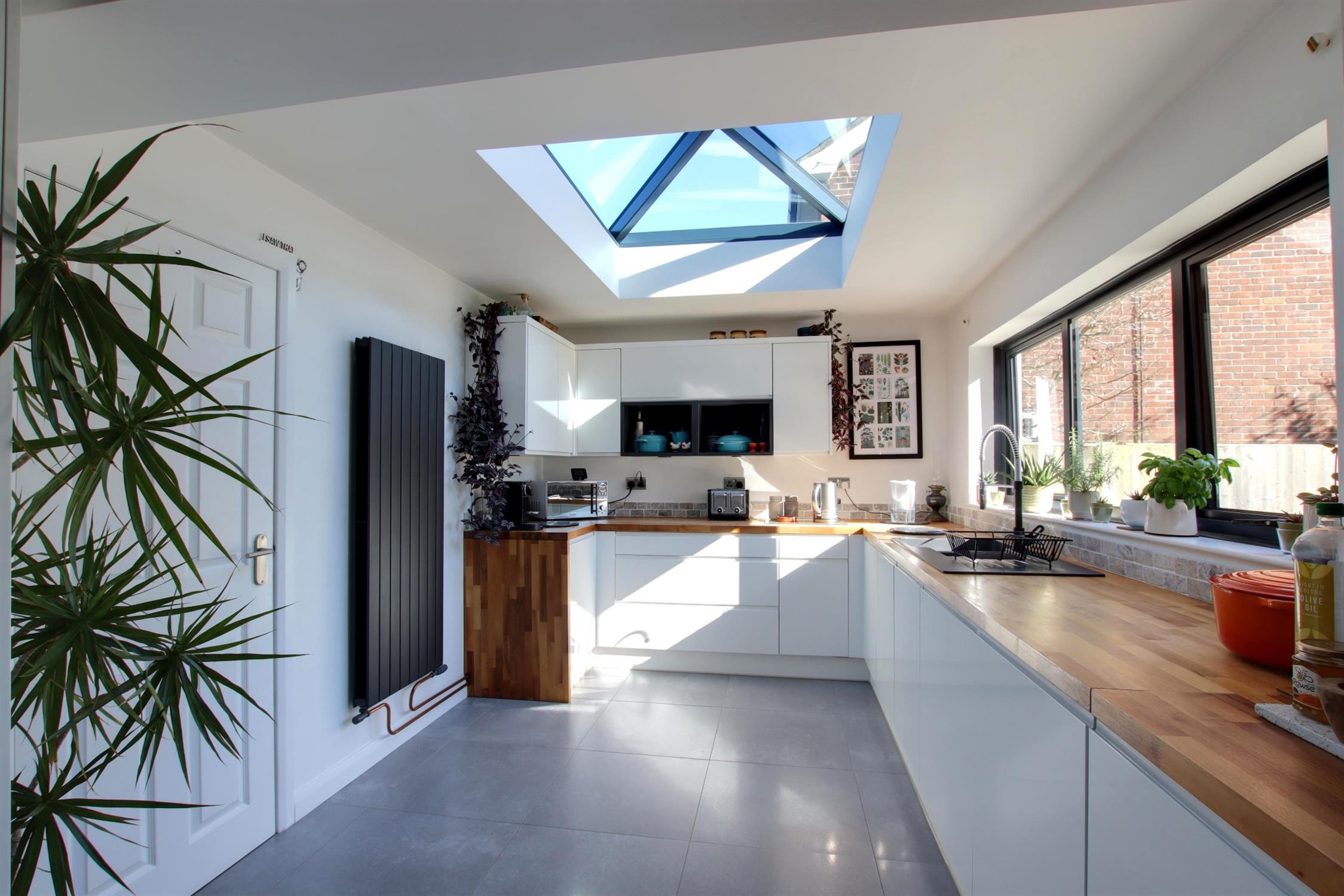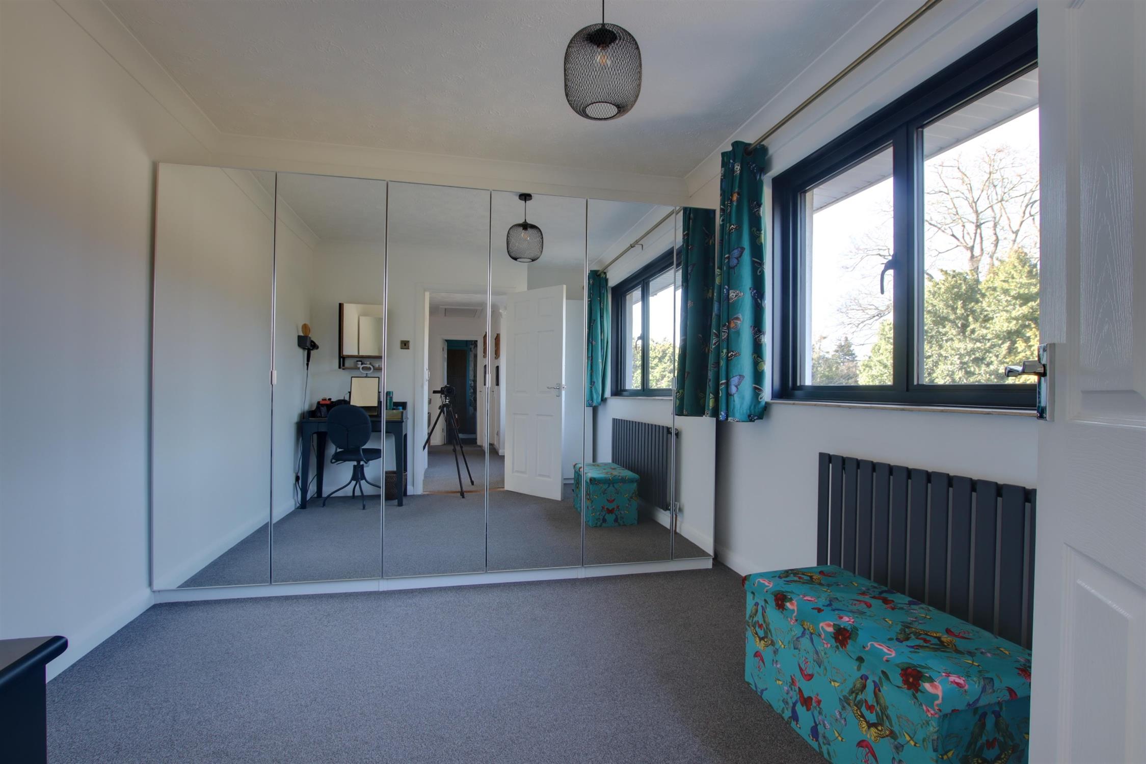 Aluminium double glazed window to rear elevation. Anthracite radiator.