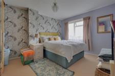 Two double glazed windows to the front elevation, feature fireplace housing a living flame gas fire, laminate floor, smooth coved ceiling, radiator.