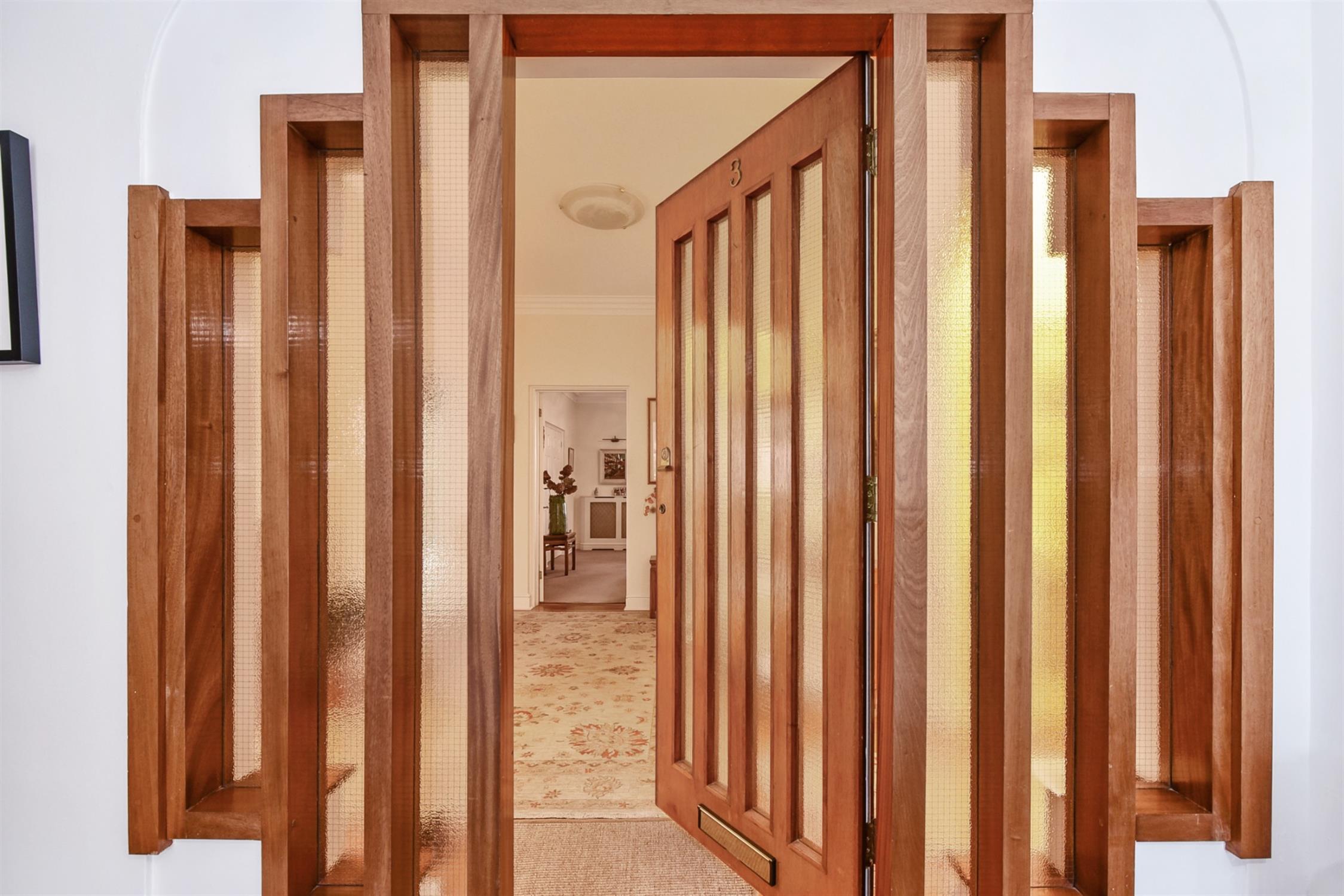 The apartment has been fitted to a particularly high standard throughout, resulting in a very elegant, classic and welcoming home. An exterior door with intercom entry system leads into a hall with winding timber staircase leading to the impressive front door the apartemnt, with timber-framed graduated windows either side of the central door.