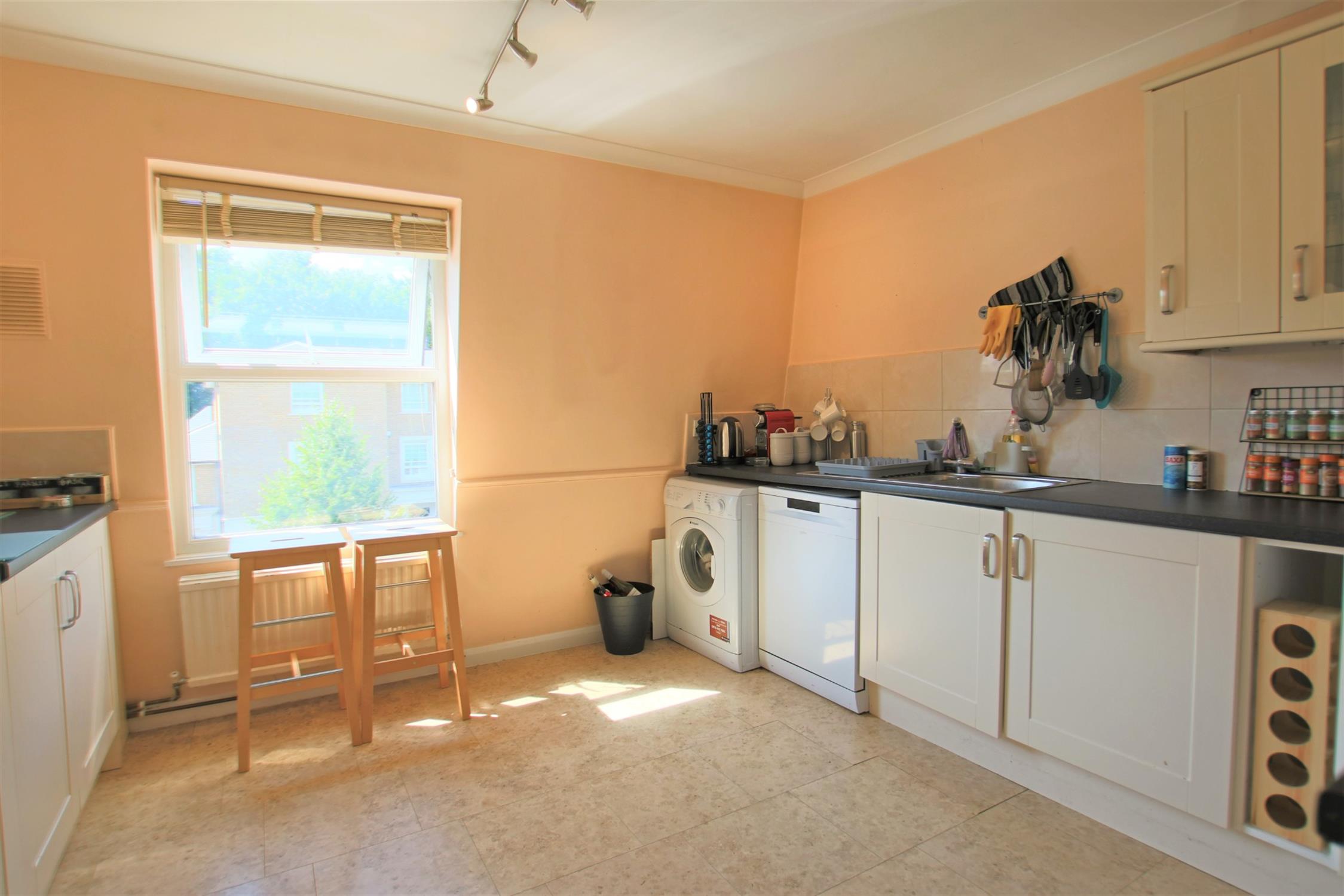 Two-bedroom top-floor flat, situated to the south of the town centre. The flat benefits from a single garage. The interior comprises; the entrance hall, lounge, and kitchen, with oven and hob, fridge/freezer, washing machine, and dishwasher. Two double bedrooms, modern bathroom with over-bath shower, separate WC. Garage and additional Permit street parking, Gas heating, and double glazing. EPC: C and COUNCIL TAX BAND D