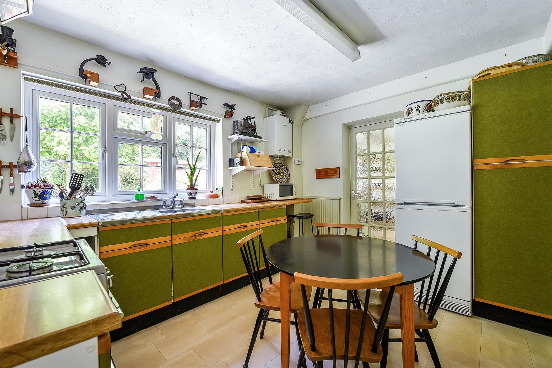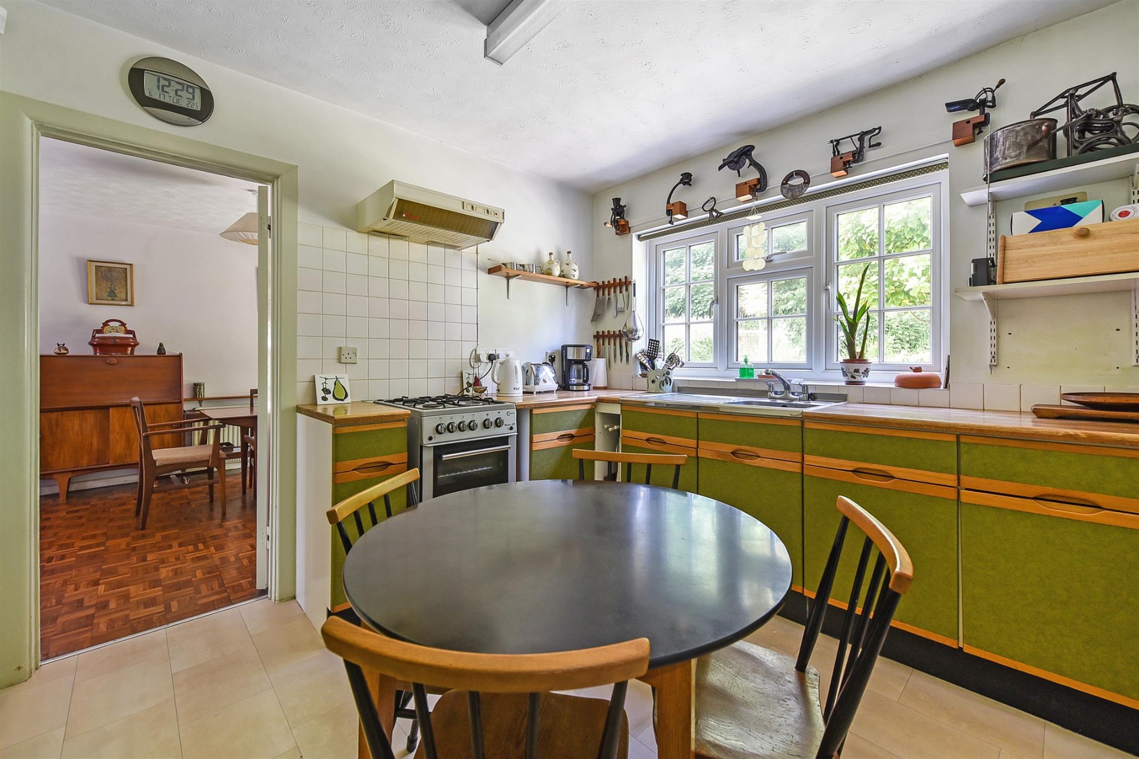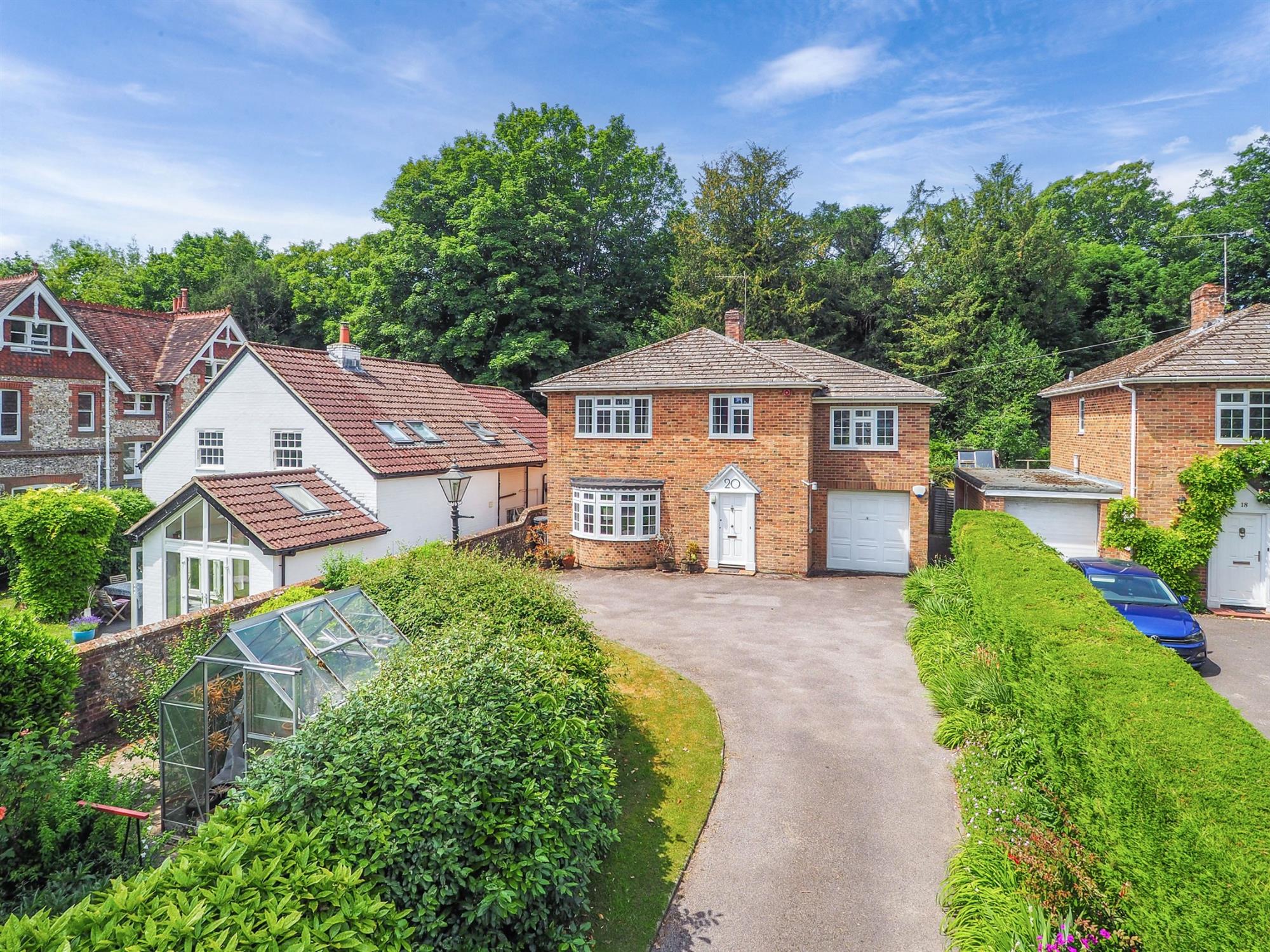 The property is set back from the road within its plot, benefiting from a long driveway for ample parking as well as a kitchen garden enclosed within mature hedging and greenhouse with adjacent patio. Bordered by attractive flint and brick wall on one side and planted beds and hedging on the other.