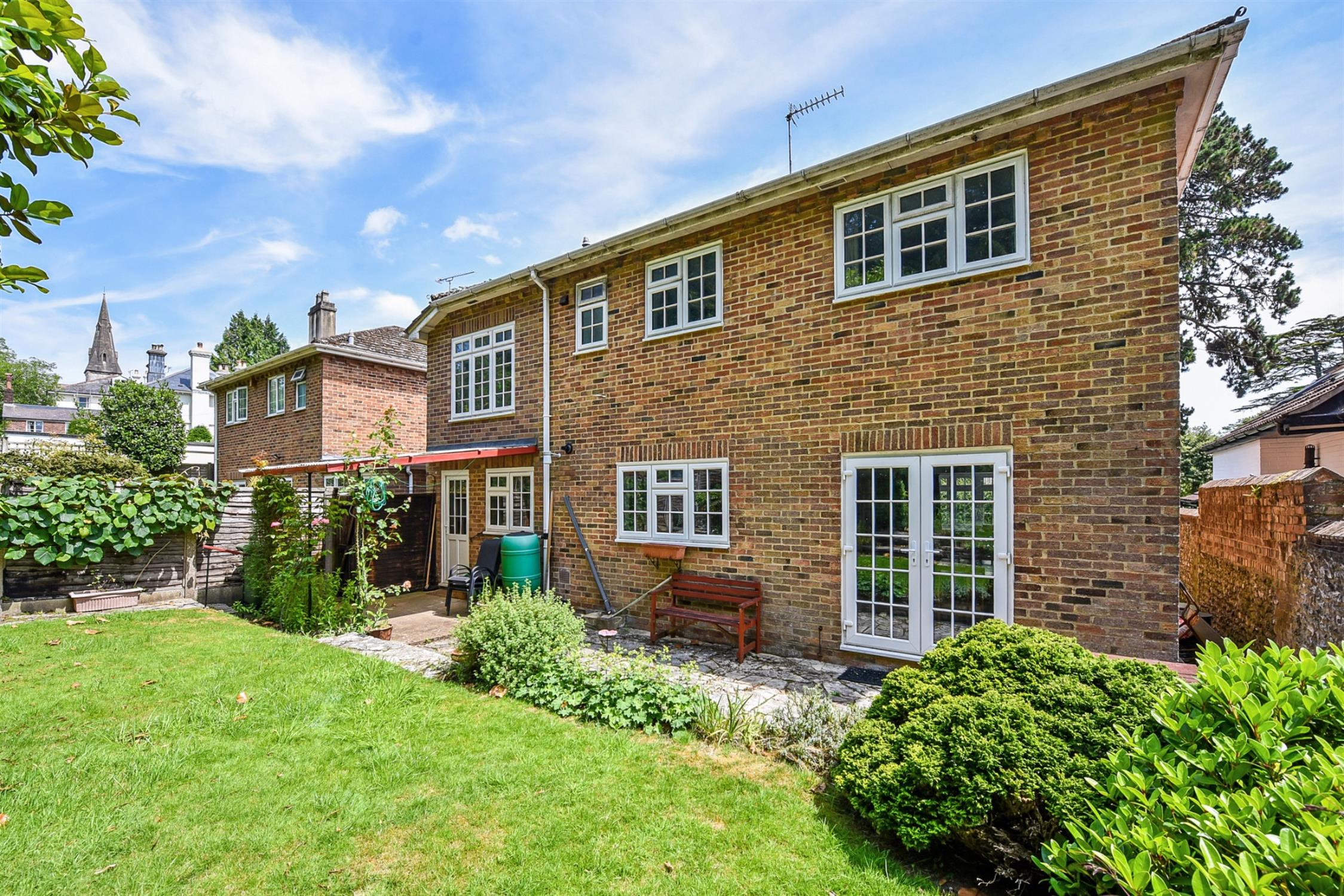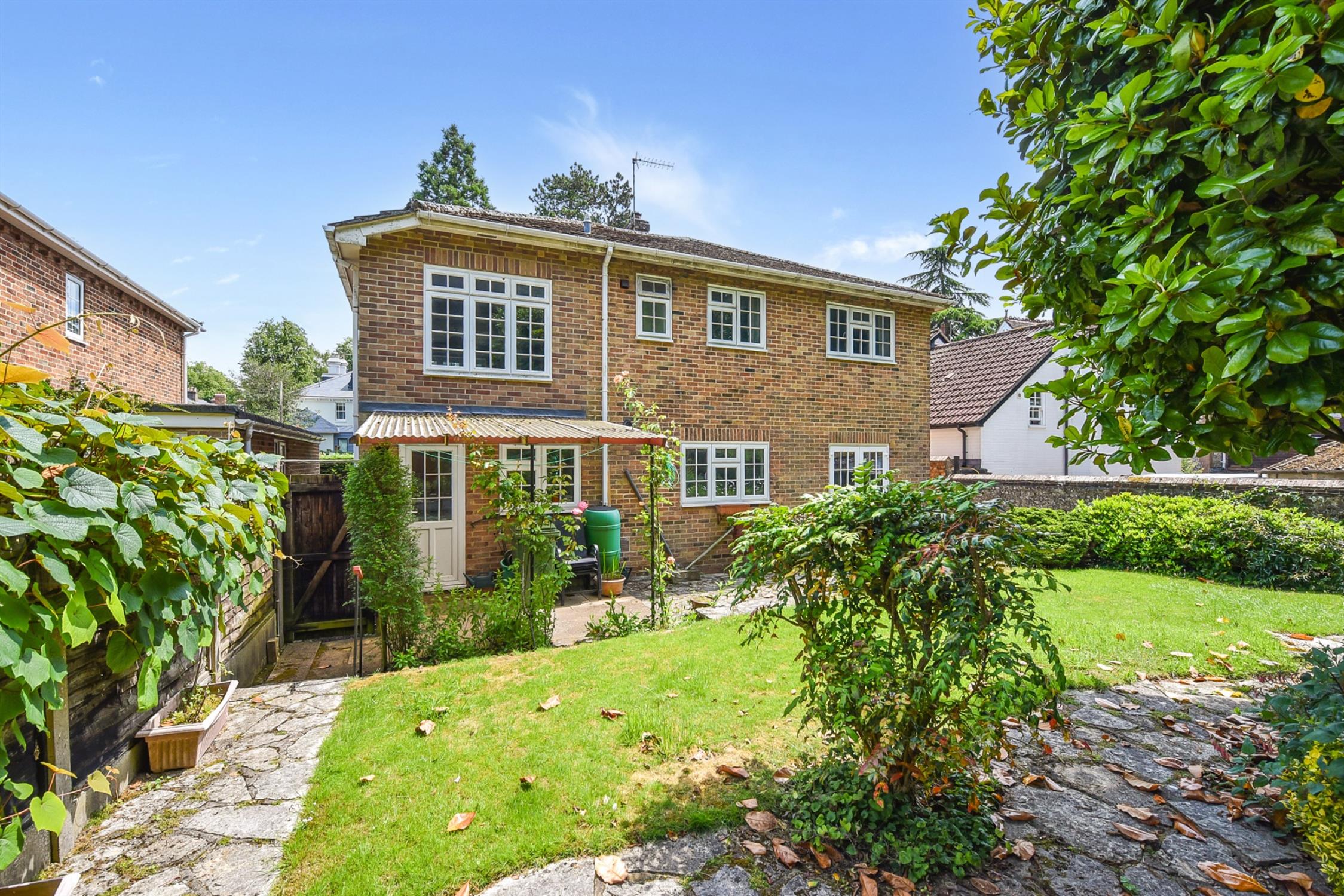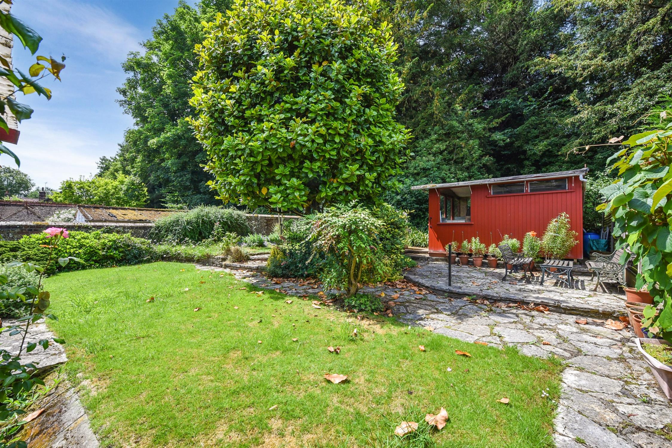 The property is set back from the road within its plot, benefiting from a long driveway for ample parking as well as a kitchen garden enclosed within mature hedging and greenhouse with adjacent patio. Bordered by attractive flint and brick wall on one side and planted beds and hedging on the other.