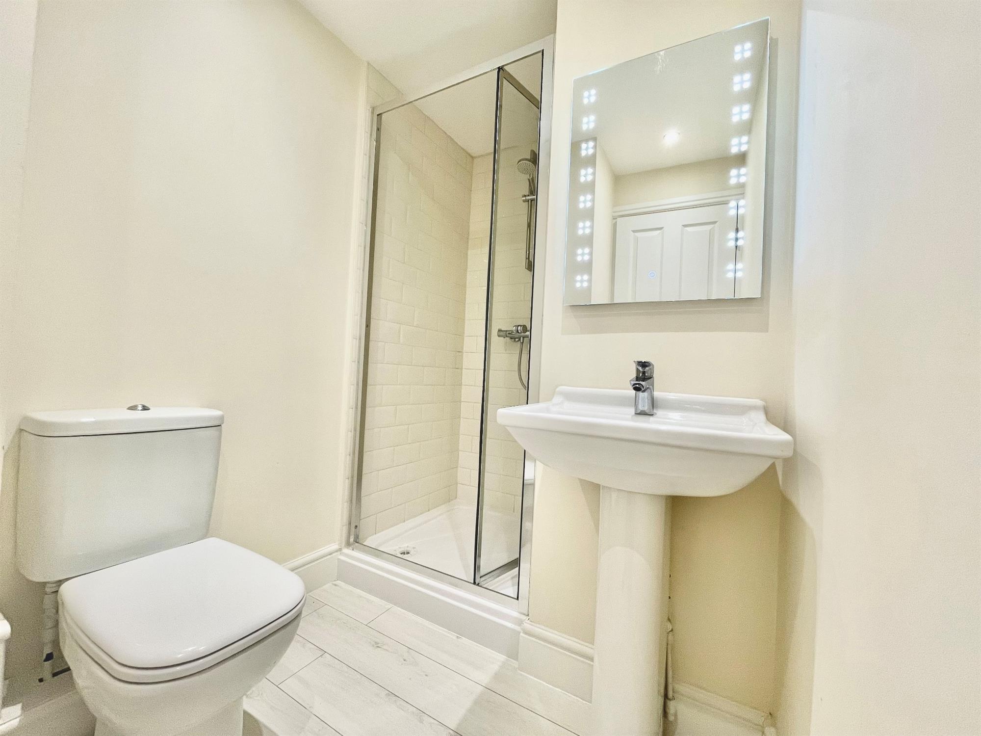Both bedrooms are bright doubles and are quietly located at the rear of the property. They both have French doors which lead to the outside space and bedroom one further offers an ensuite fitted with shower over bath, toilet, handbasin and heated towel rail. The additional contemporary bathroom is fitted with a waterfall shower, toilet, handbasin and chrome heated towel rail. The property further benefits from a storage cupboard in the hall which houses the boiler.