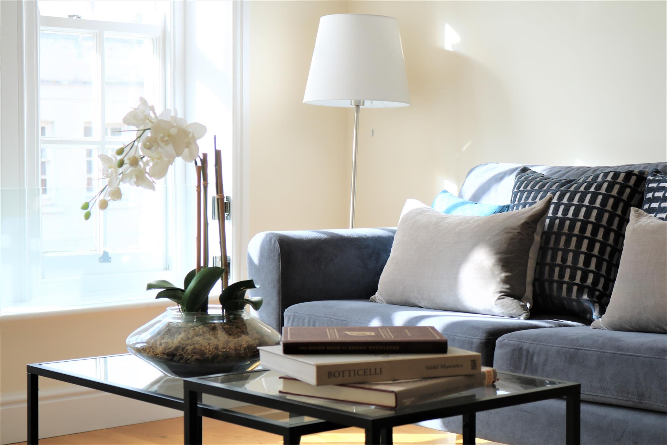 This second-floor apartment is particularly bright and airy with grand high ceilings and has been decorated in a tastefully neutral style throughout.