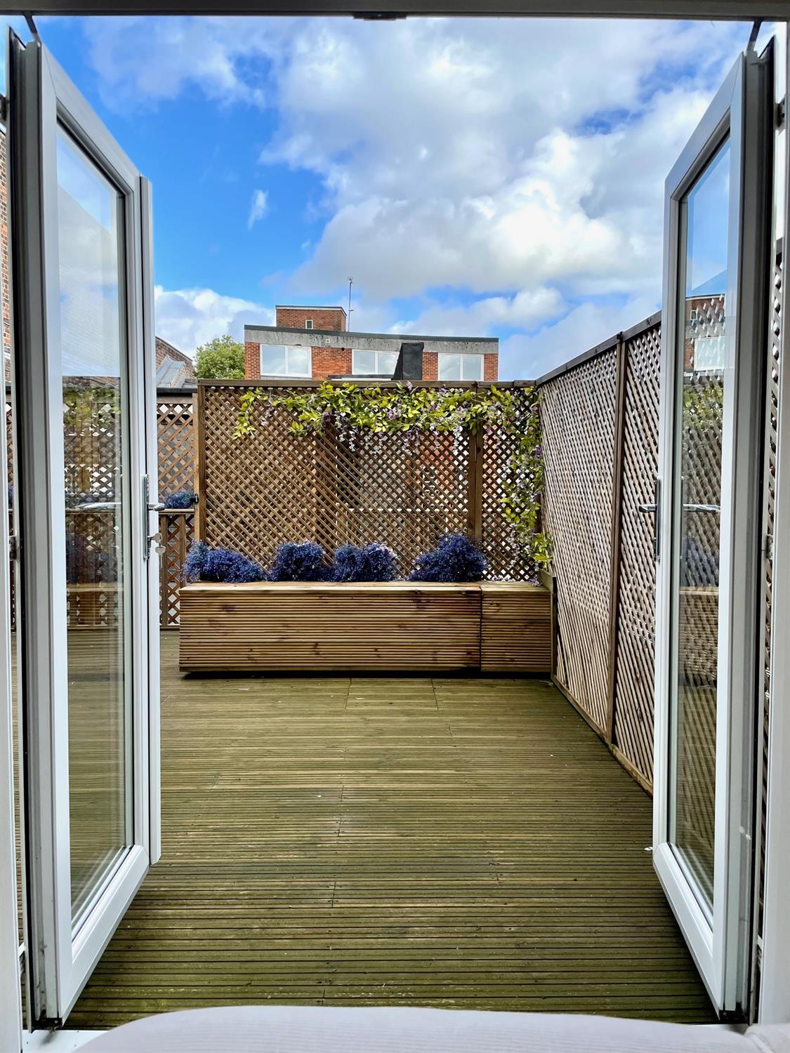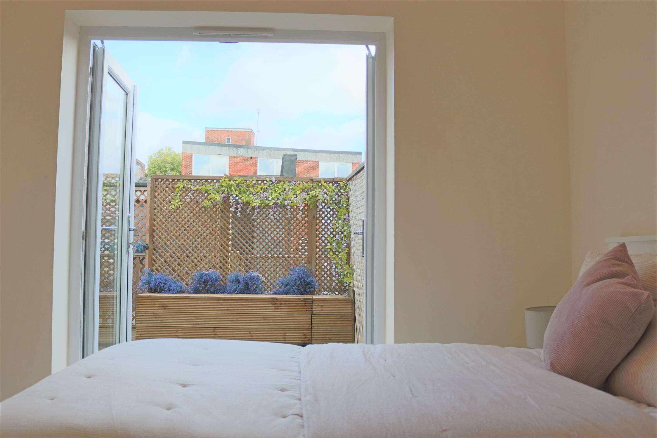 Both bedrooms are bright doubles and are quietly located at the rear of the property. They both have French doors which lead to the outside space and bedroom one further offers an ensuite fitted with shower over bath, toilet, handbasin and heated towel rail. The additional contemporary bathroom is fitted with a waterfall shower, toilet, hand basin and chrome heated towel rail. The property further benefits from a storage cupboard in the hall which houses the boiler.