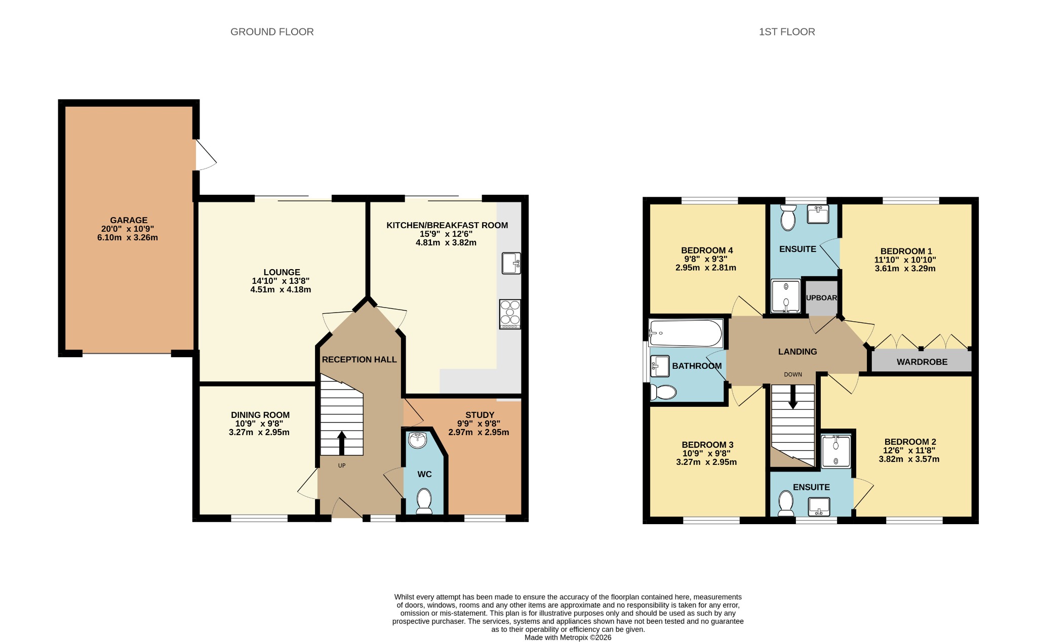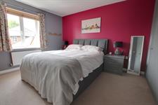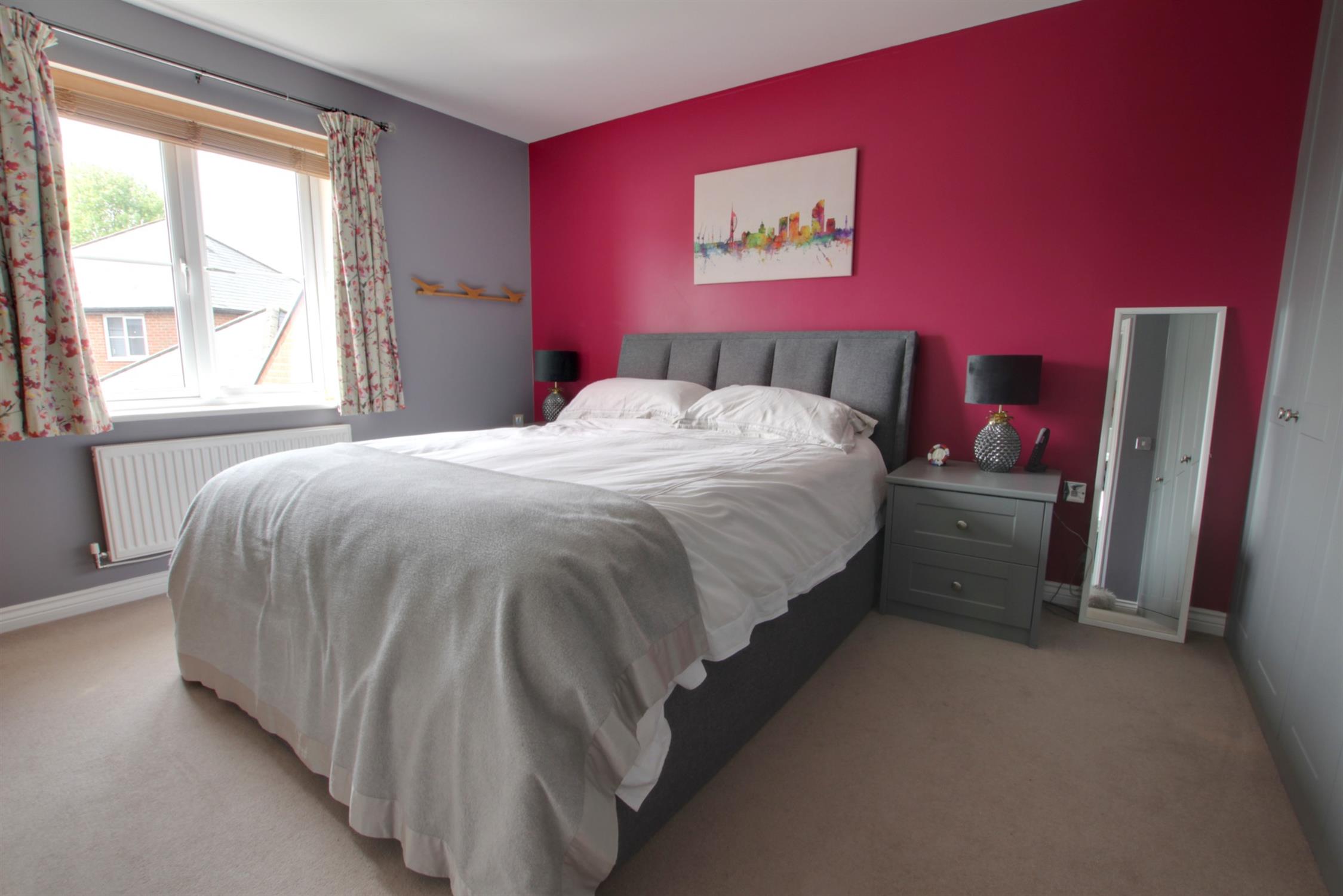 Range of fitted his and hers wardrobes. Radiator. Double glazed window to rear.