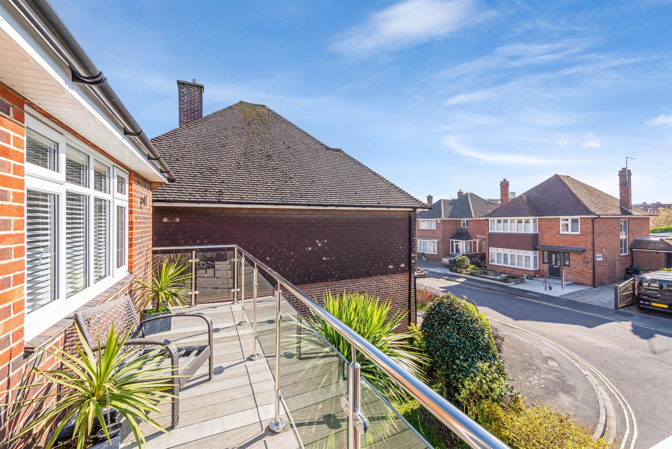 Upon entering, a welcoming entrance porch leads through to a convenient downstairs WC and into a spacious lounge, beautifully designed to flow seamlessly into an open-plan dining area - perfect for both everyday living and entertaining. The contemporary kitchen is stylishly appointed with modern fittings and ample storage, while the adjoining conservatory offers a bright and versatile additional reception space, overlooking the garden. Upstairs, the home continues to impress with four well-proportioned bedrooms. The grand principal suite benefits from an extensive range of fitted bedroom furniture and a luxurious four-piece en-suite bathroom. The remaining bedrooms are served by a well-appointed shower room. A standout feature is the charming balcony accessed from the landing, enjoying a desirable westerly aspect - ideal for relaxing and taking in the afternoon and evening sun. Externally, the enclosed rear garden has been thoughtfully landscaped for low maintenance, featuring an artificial lawn and patio area, perfect for outdoor dining and entertaining. Presented in immaculate condition throughout and enhanced by the addition of solar panels, this superb home combines comfort, style, and efficiency in one of Southsea’s most prestigious coastal settings.