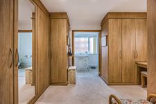 Coved ceiling, triple glazed obscured window, range of fitted wardrobes and dressing table, radiator, fitted carpet.