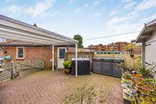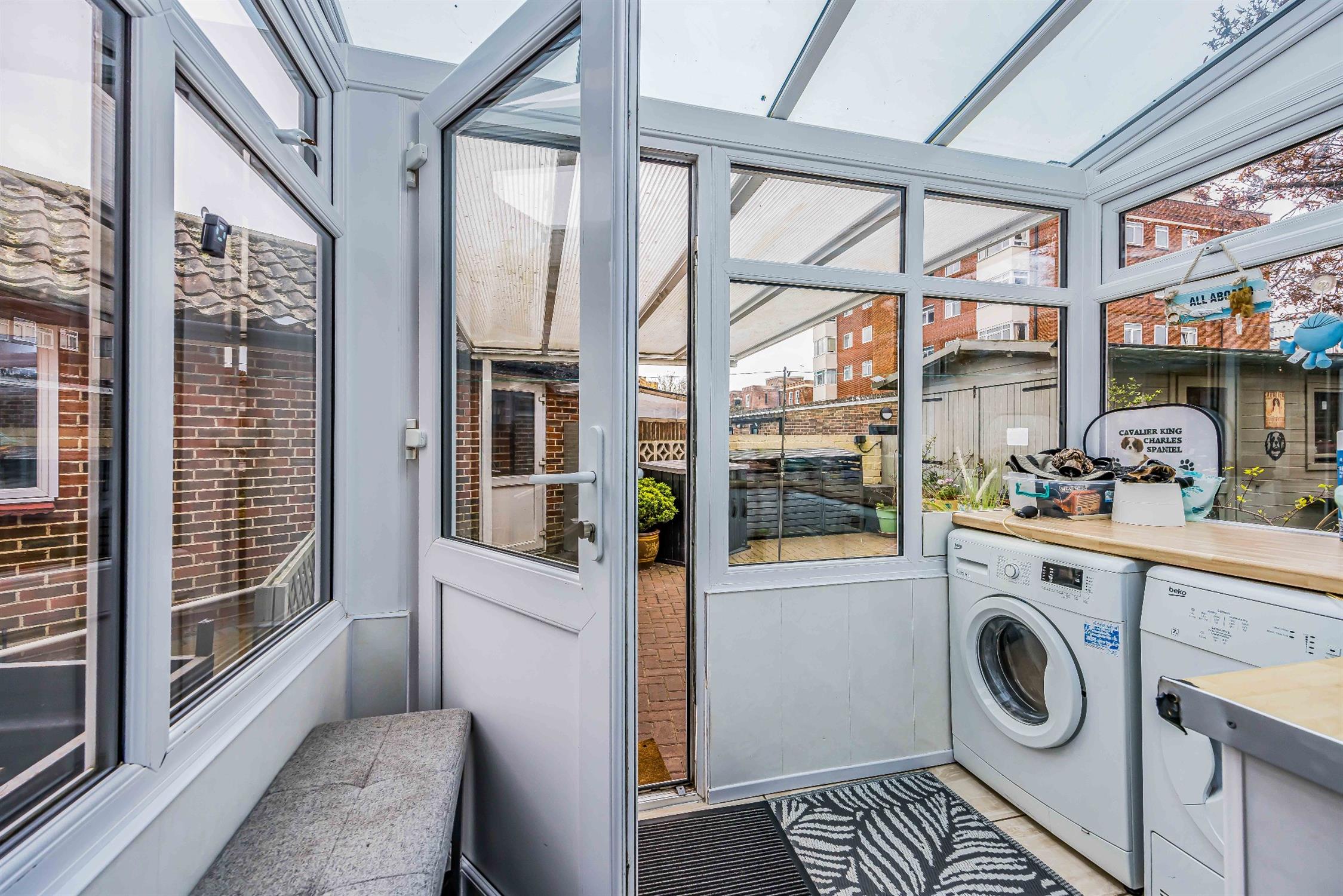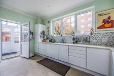 Triple glazed windows and door to rear garden, space and plumbing for washing machine and tumble dryer, wall mounted Vaillant gas boiler, work surface, cupboards.