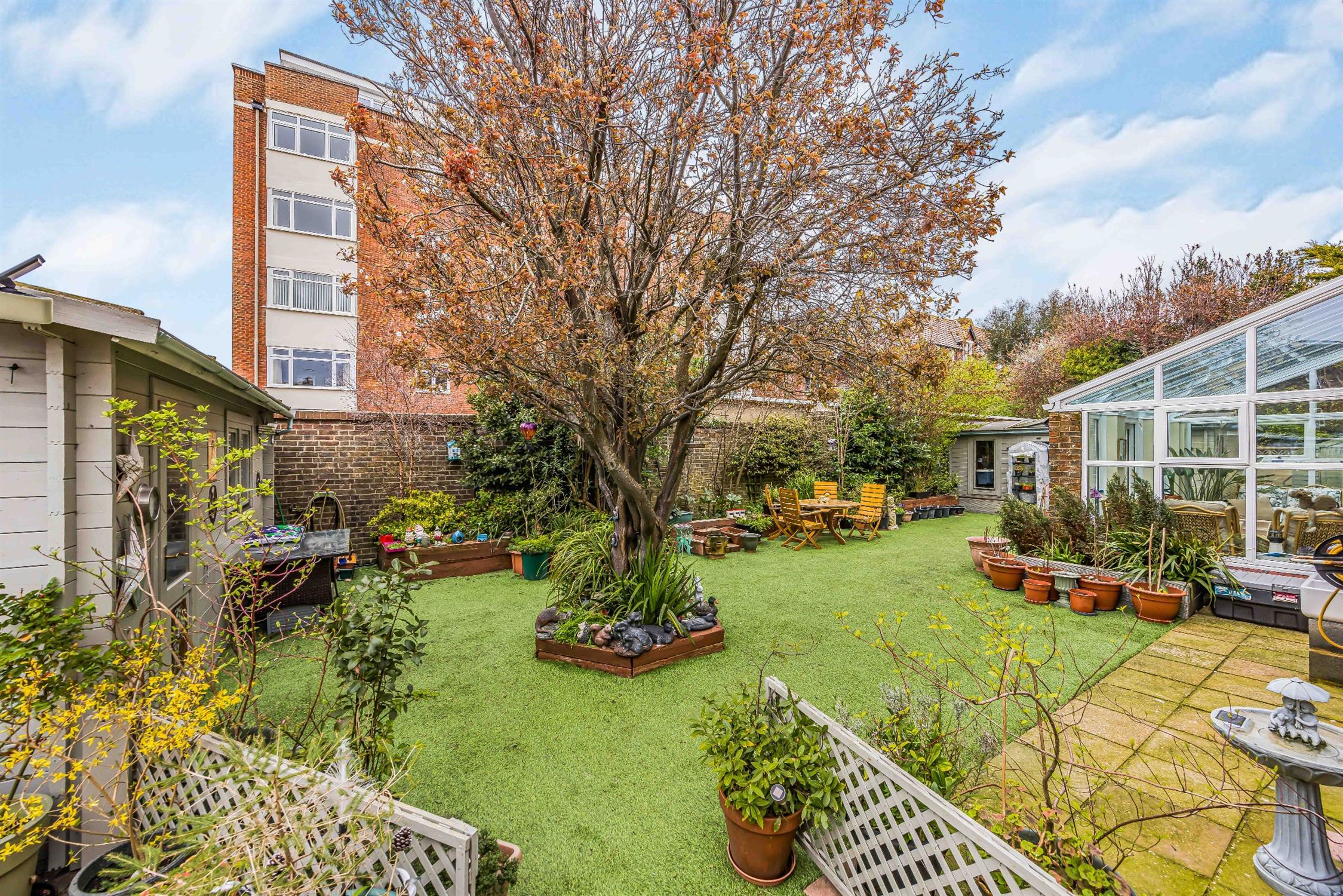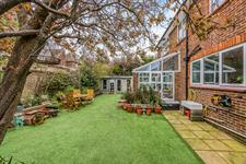 Rear - Wrap around garden with areas of block paved patio, artificial lawn, raised sleeper beds, mature tree. Outbuildings including - summer house, workshop, two timber storage sheds, brick built storage shed.
