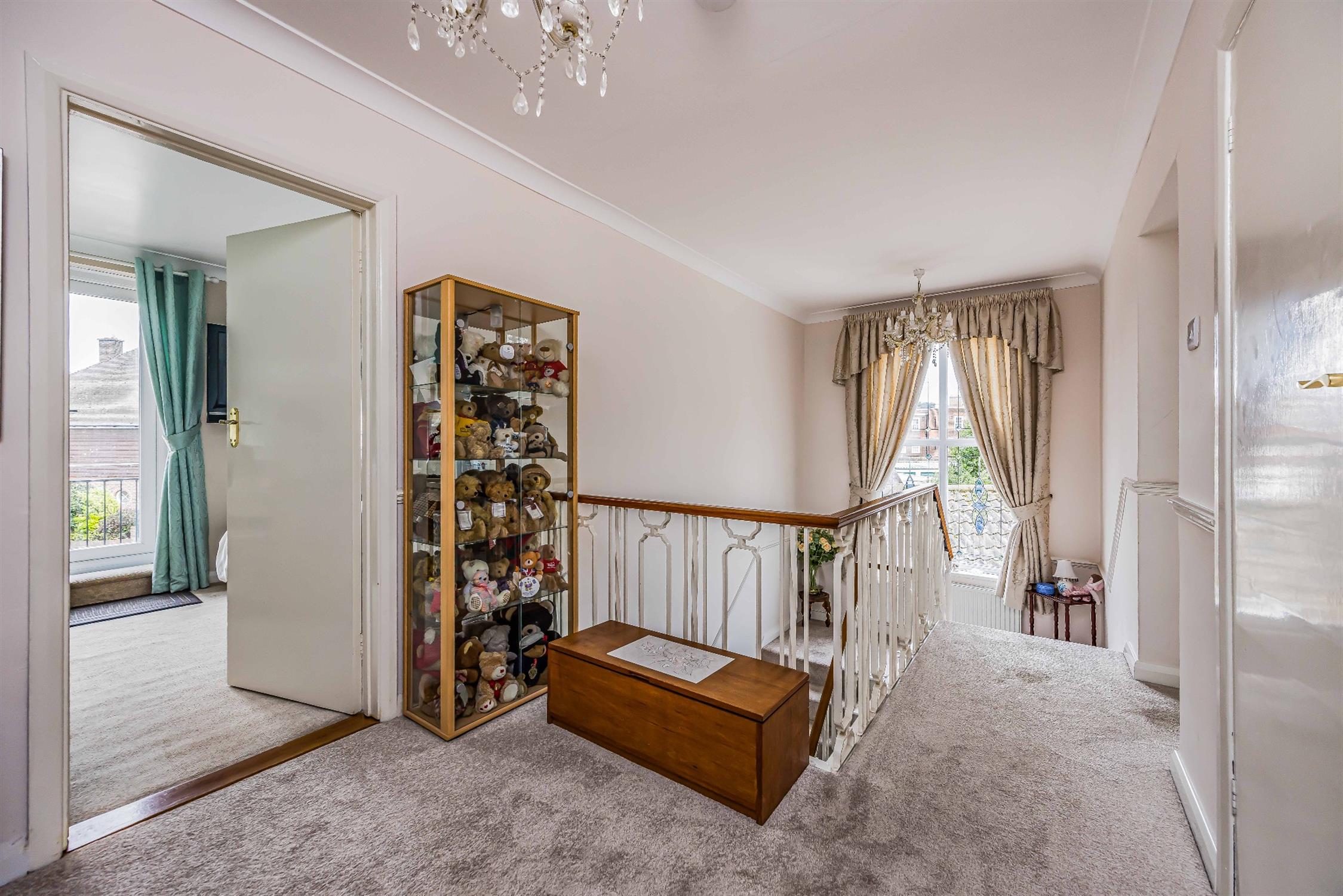 Coved ceiling, tall picture window on half landing, radiator, storage cupboard, fitted carpet.