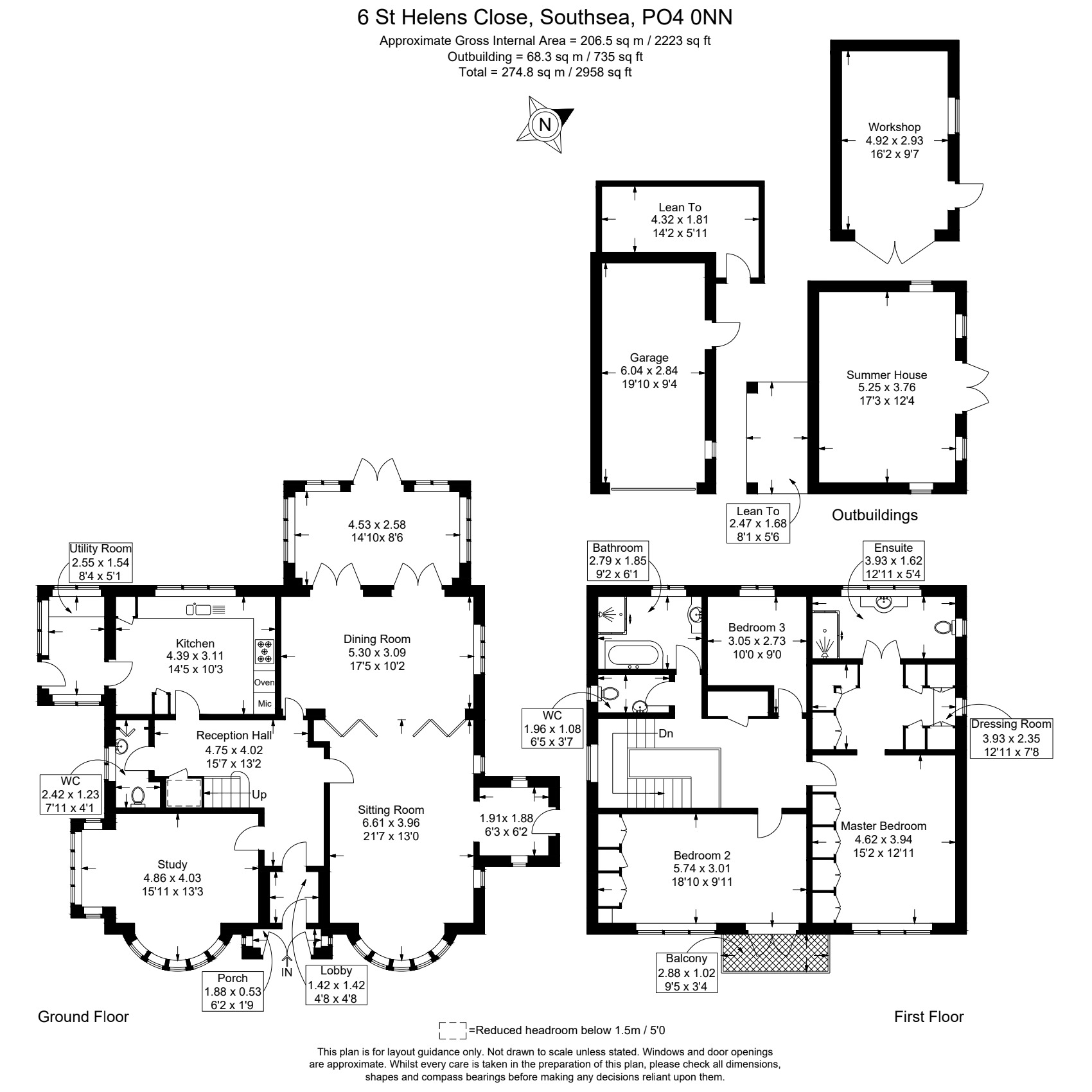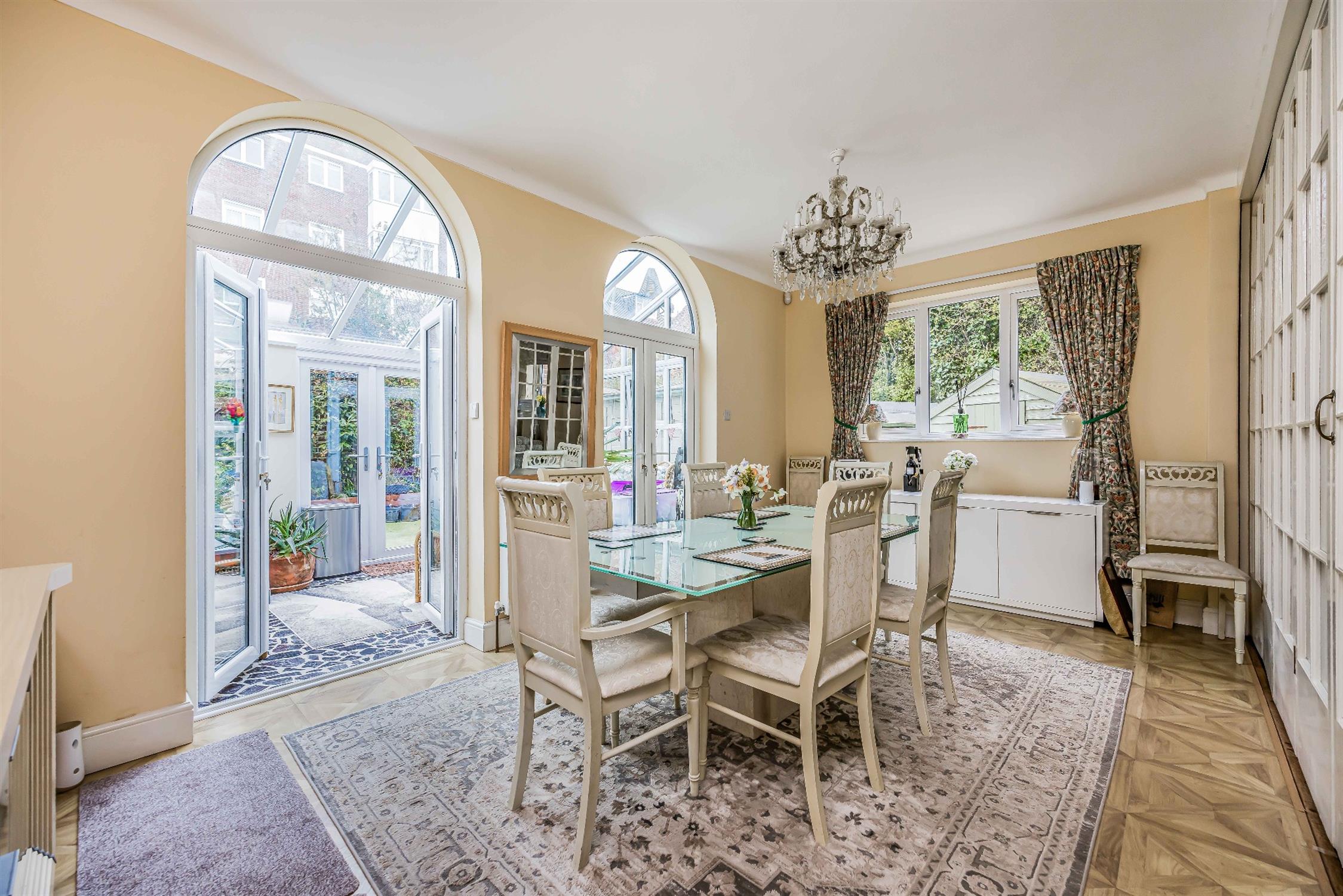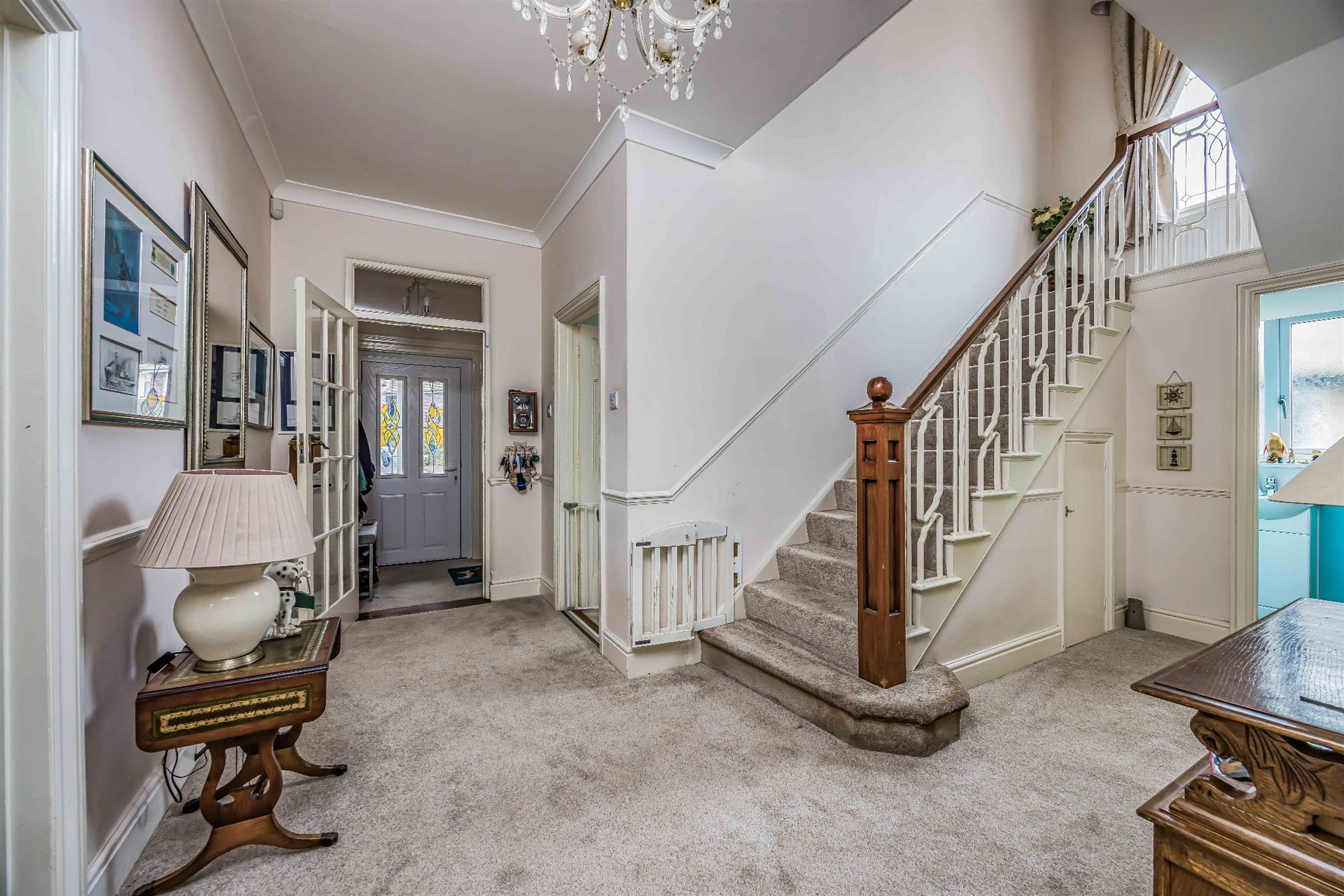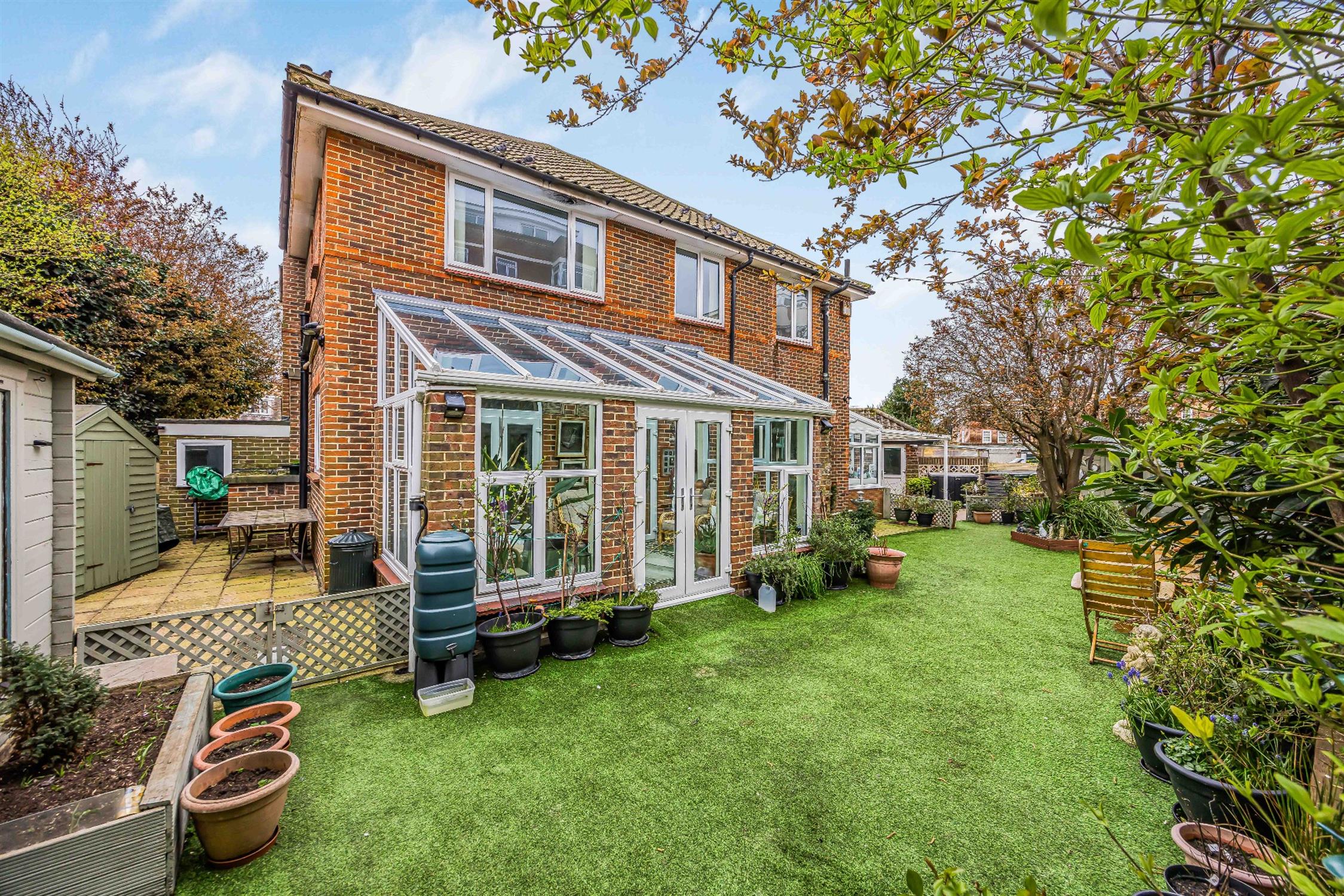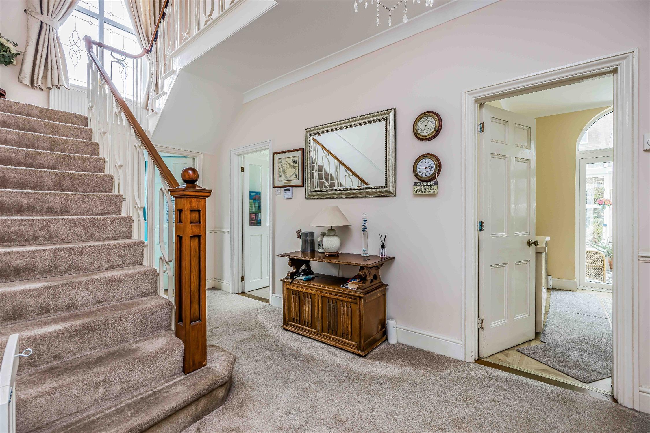 The wrap-around garden has been designed for ease of maintenance, featuring a combination of patio areas and artificial lawn - perfect for entertaining or relaxing. In addition, the grounds boast a range of outbuildings including a garage, workshop, summer house and several storage sheds, offering excellent flexibility for hobbies or additional storage. Internally, the accommodation is both spacious and well laid out. A welcoming porch leads into a grand entrance hall, setting the tone for the rest of the home. There is a convenient ground floor WC, a dedicated study ideal for home working, and a comfortable sitting room with bifolding glazed doors that open seamlessly into the dining room, creating a sociable and open-plan feel. Beyond this, a conservatory provides further reception space with views over the garden. The kitchen is complemented by a separate utility room, adding practicality to everyday living. To the first floor, the impressive principal bedroom benefits from its own dressing room and en-suite shower room. A second double bedroom enjoys access to a private balcony, and a third double bedroom and family bathroom complete the accommodation. The property is well-presented throughout, and offers buyers the opportunity to personalise and enhance to their own taste. An excellent opportunity to acquire a spacious home in a desirable residential location.
