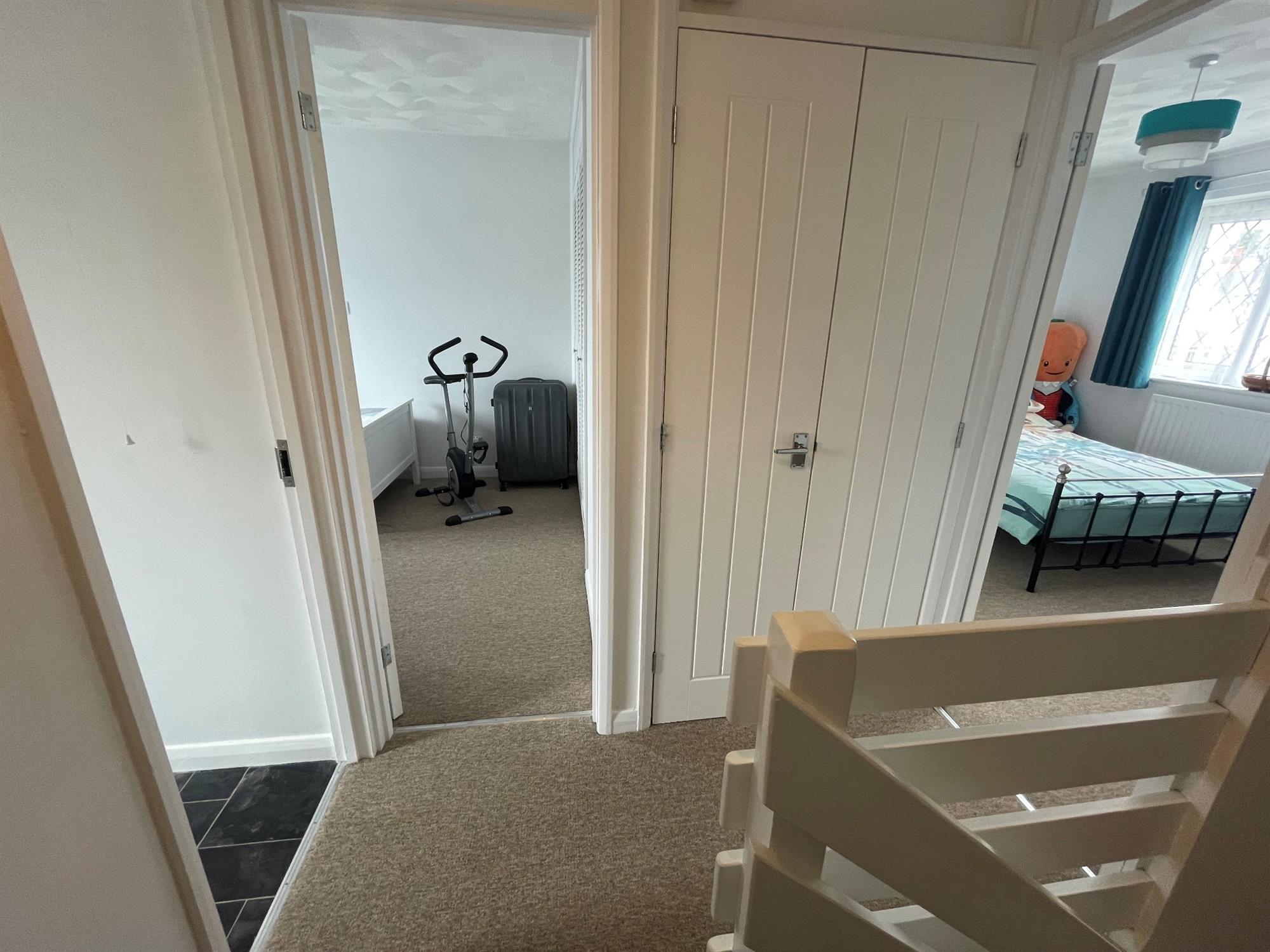 STAIRS AND LANDING – Carpeted stairs leading to the landing with airing cupboard housing the boiler and doors to bedrooms and bathroom.