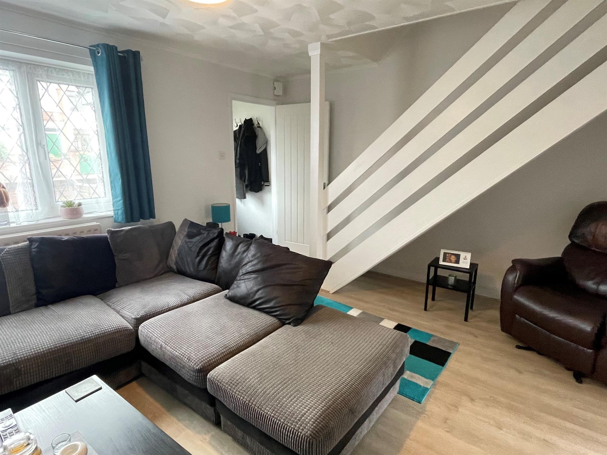 LOUNGE – Located at the front of the property with laminate flooring, window to front and door to kitchen. Stairs leading to first floor.