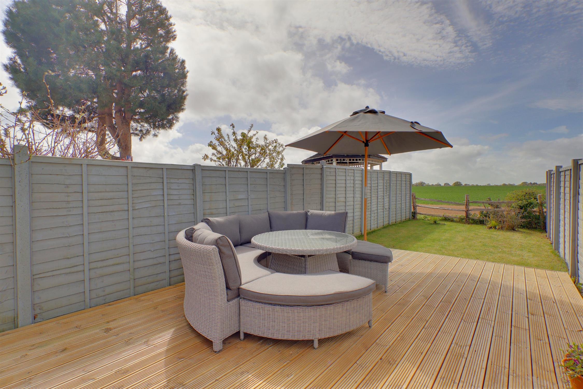 Mainly laid to lawn with decking and patio areas, as well as a shed. A particular feature of the garden is the clear, uninterrupted outlook across the fields beyond.