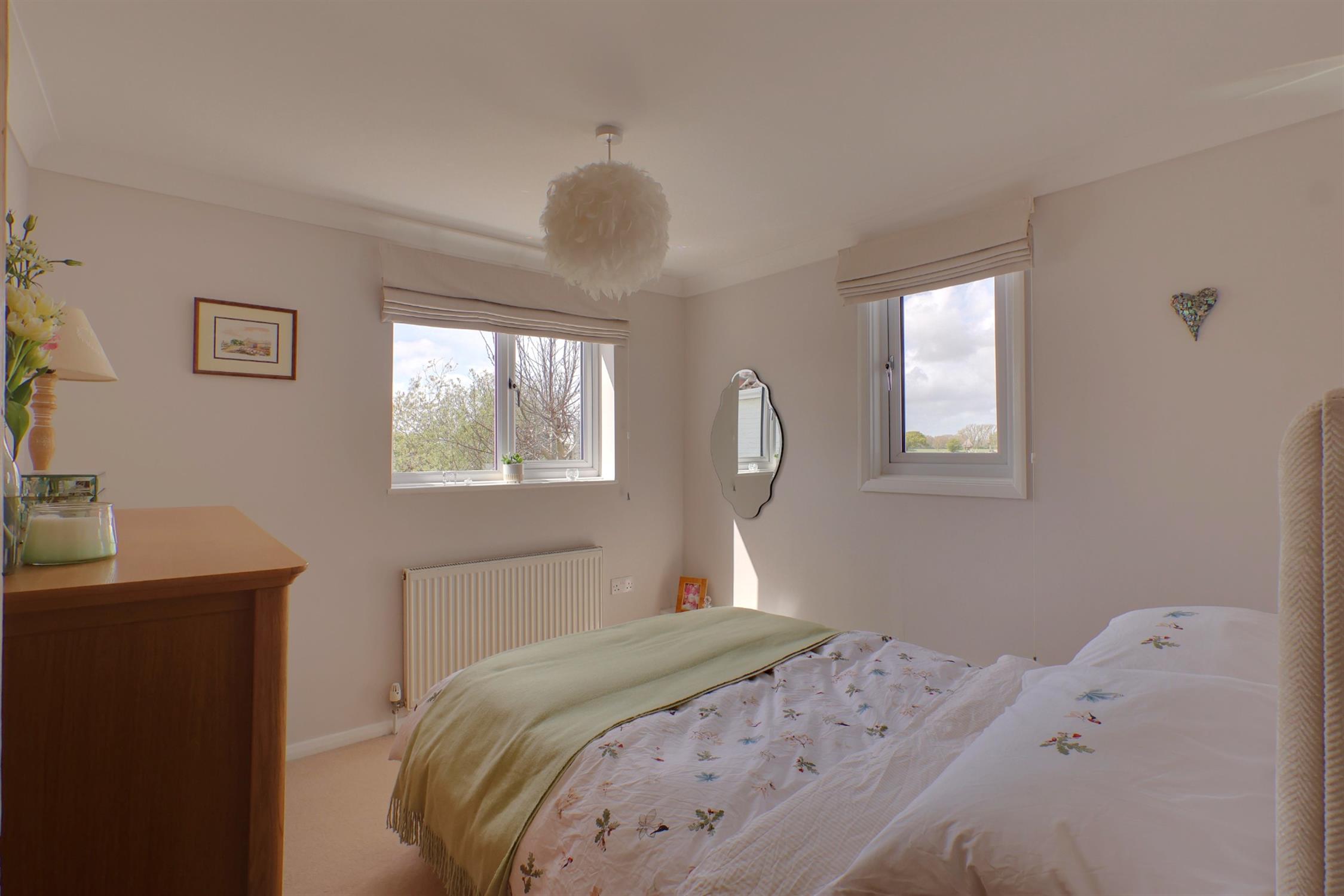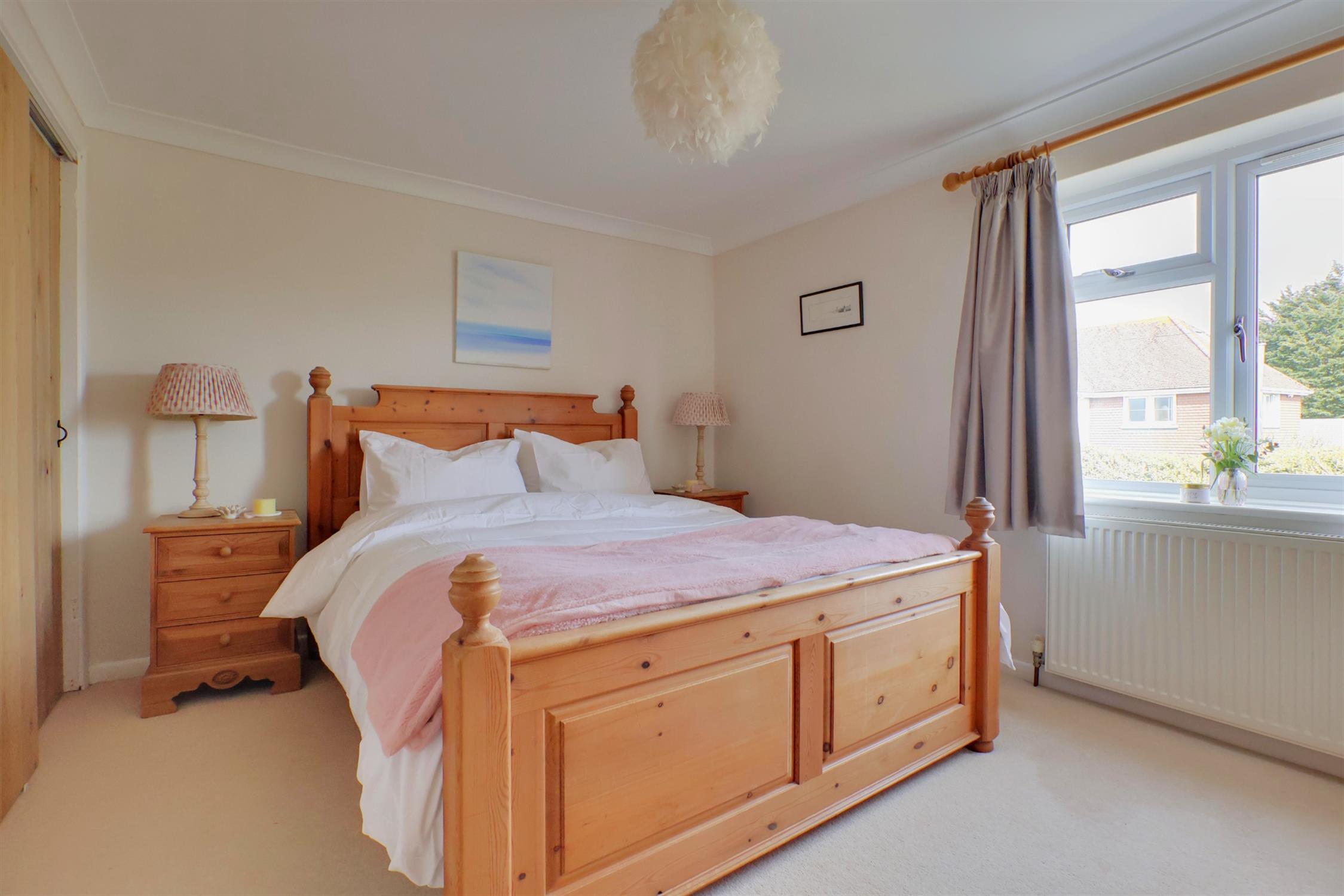 Double-glazed windows to the front, two built-in cupboards either side of the chimney breast, radiator, and built-in wardrobe with sliding doors. This room enjoys views across to Thorney View.