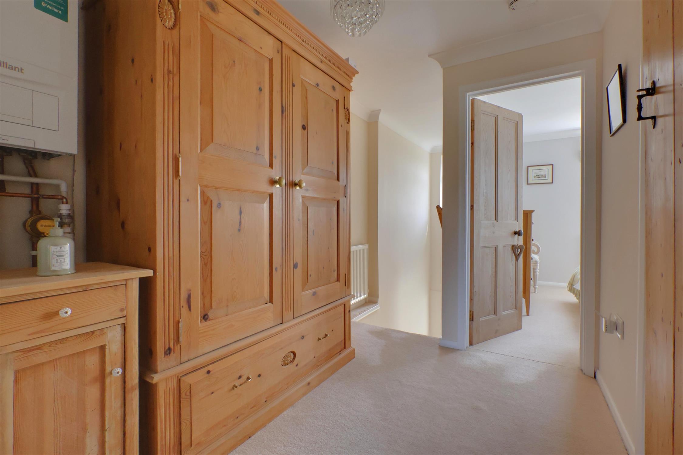 Access to all first floor rooms and has a wall-mounted boiler, loft hatch and radiator.